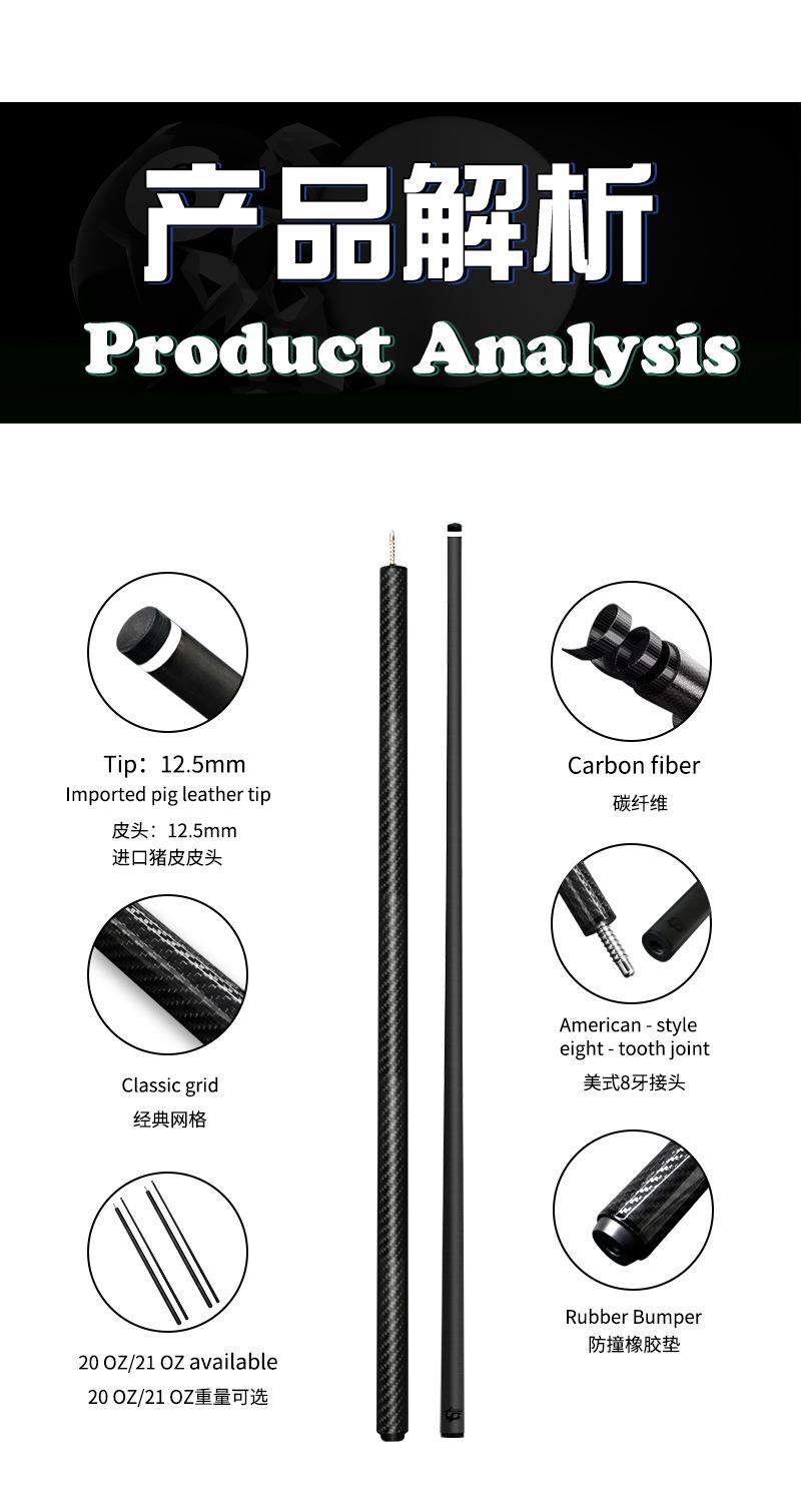 Compra Taco de Billar de Gama Media y Alta Fibra de Carbono Taco Americano Taco de Billar Británico 1/ 0.1kg Sección Taco de Billar 12.5mm al por mayor en Joom.pro