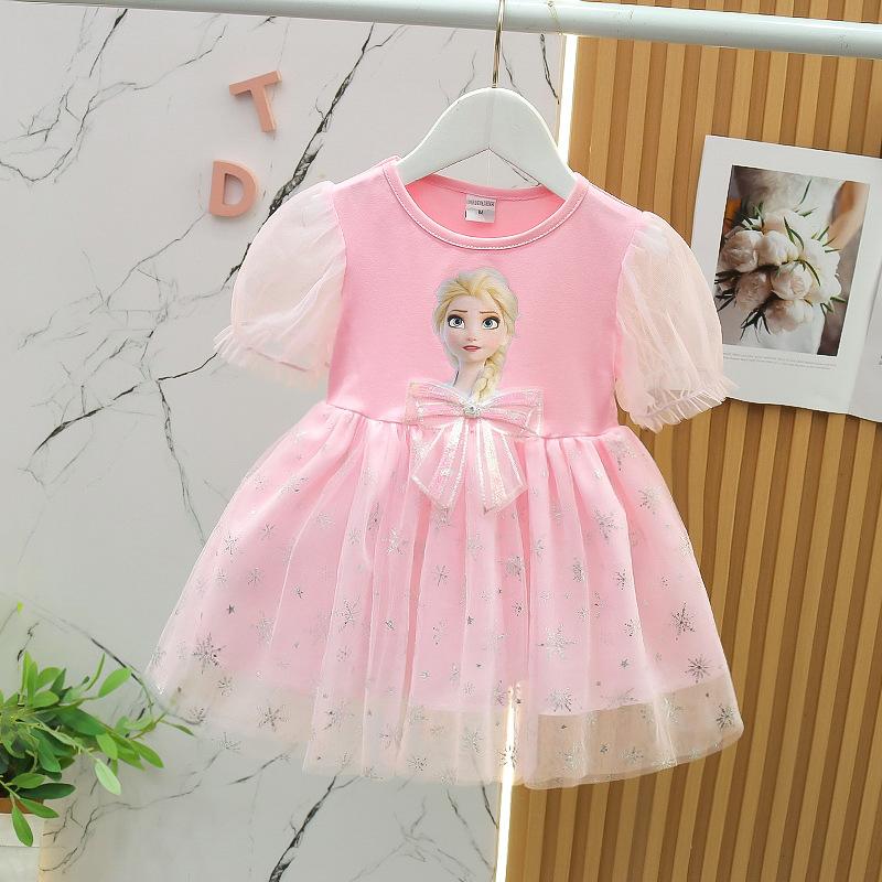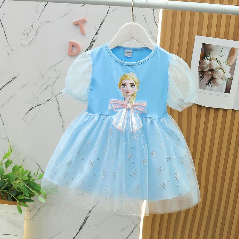 Gran Venta Ropa para Niños al por Mayor Vestido de Princesa Elsa de Algodón Puro Cielo Estrellado para Niñas Verano 2024 Moda para Bebés Corazón Moderno Vestido Elsa