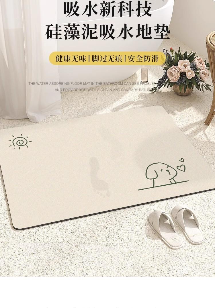 Tapete de Piso Absorbente de Barro Diatomeo Simple de Dibujos Animados para Hogar Baño Antideslizante de Secado Rápido Tapete para Pies Baño Cuidado Fácil Felpudo