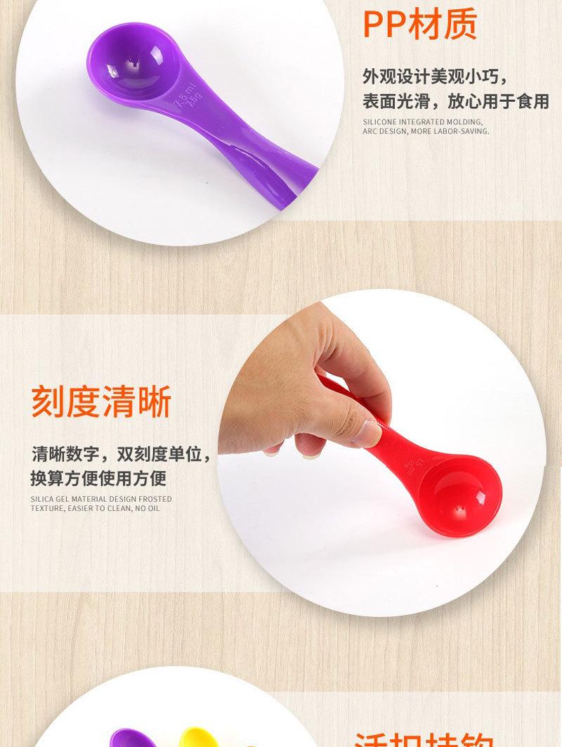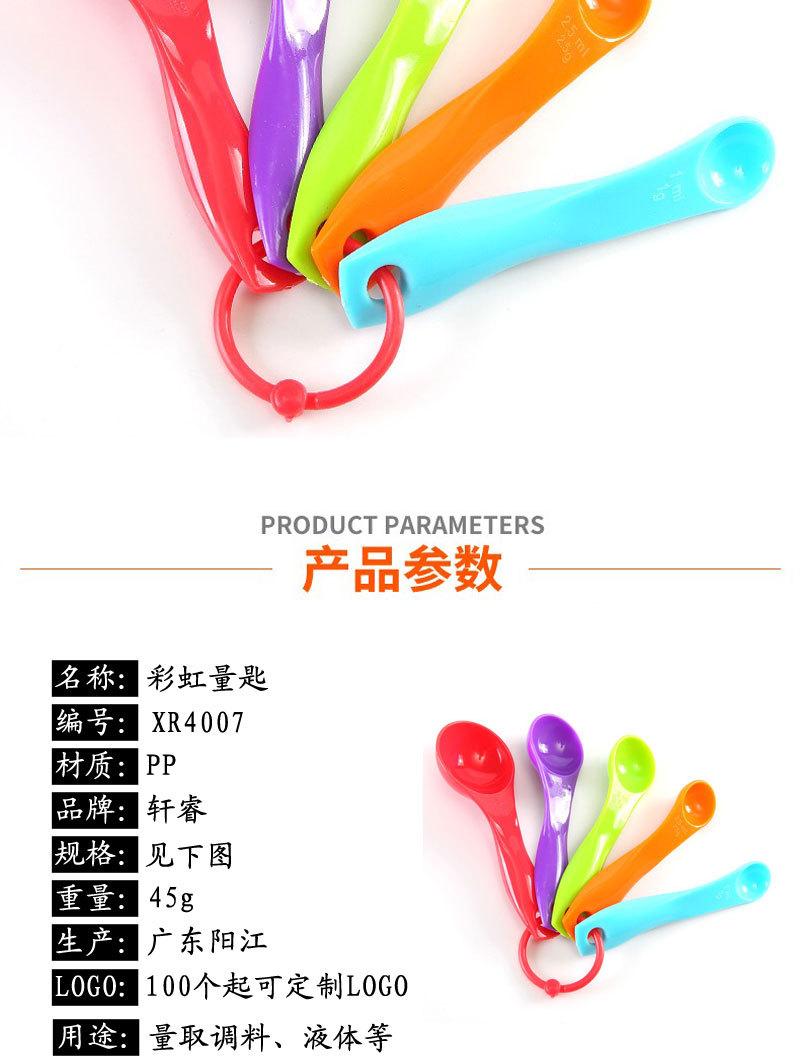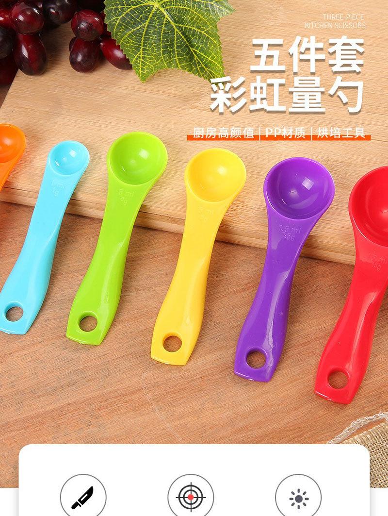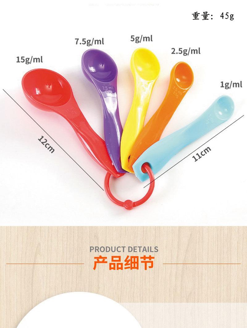 Venta al por mayor de fábrica cuchara medidora de color taza medidora cuchara medidora de plástico taza medidora con escala juego de herramientas para hornear de cinco piezas