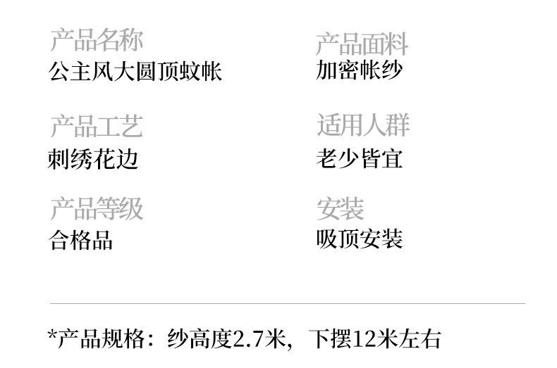 1.2m bed [diameter 1.2m, tent height 2.7m], 1.5m bed [diameter 1.2m, tent height 2.7m], 1.8m bed [diameter 1.2...