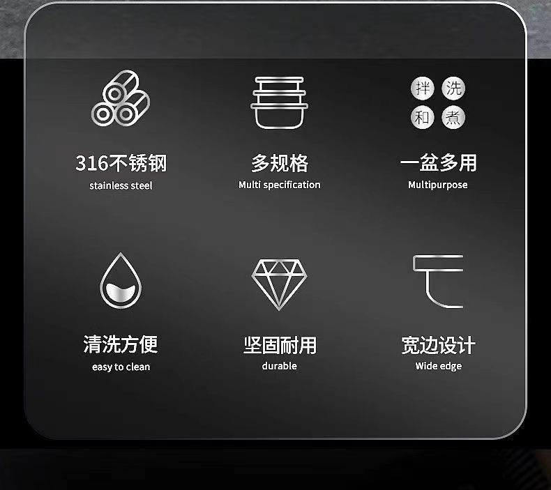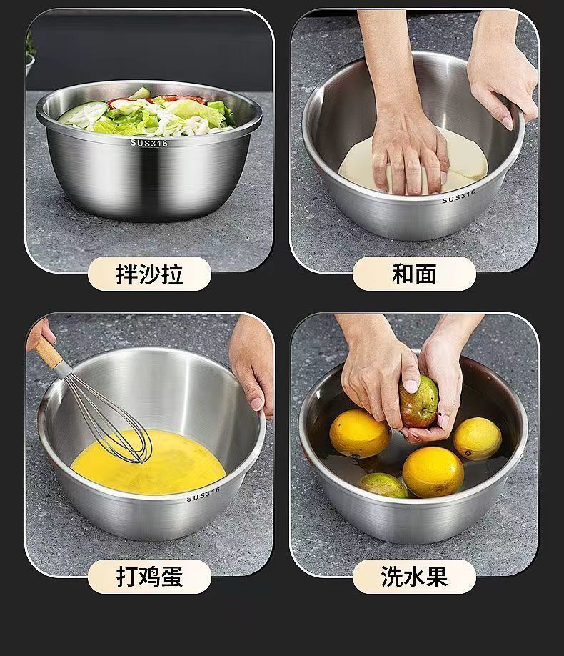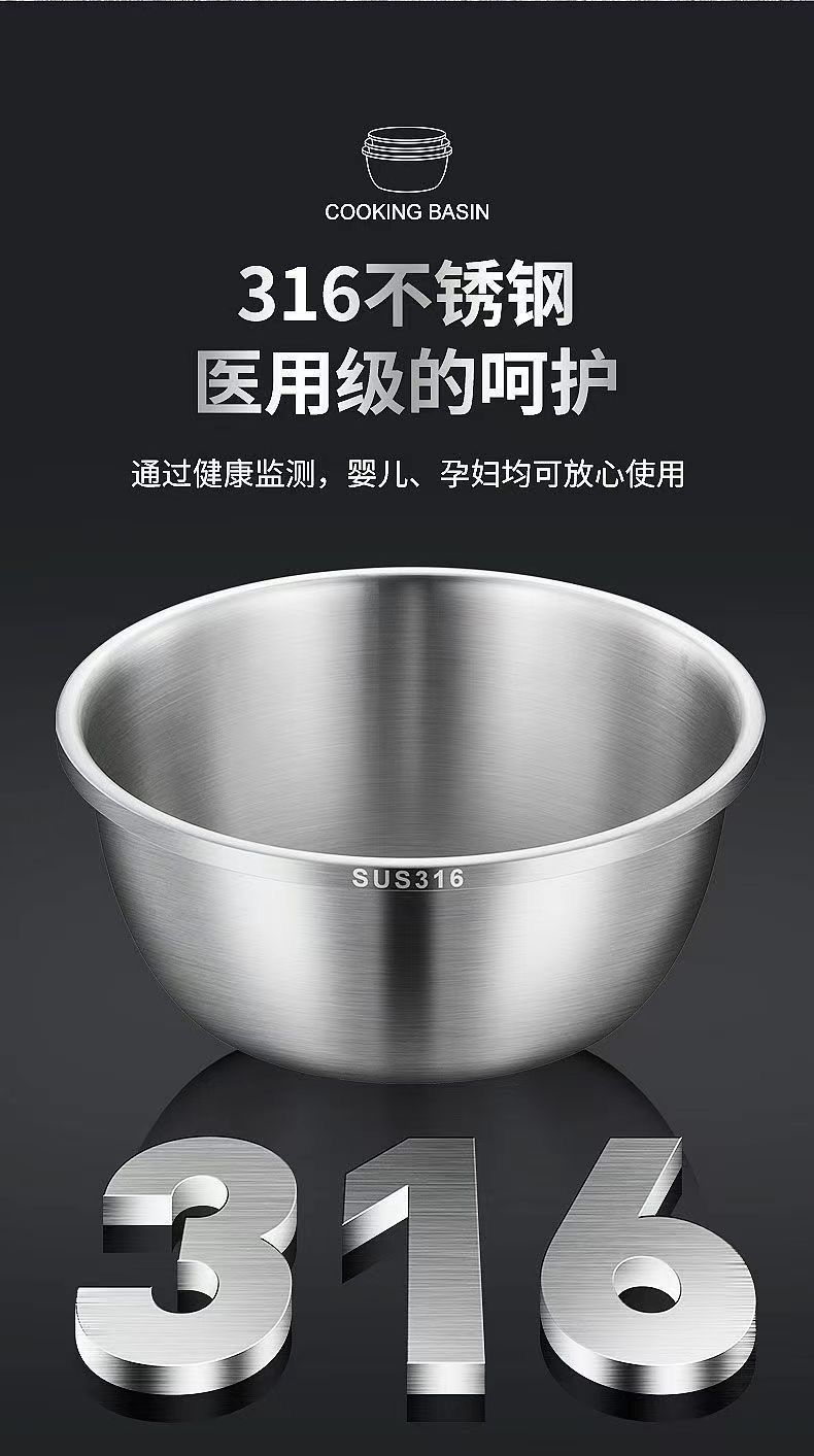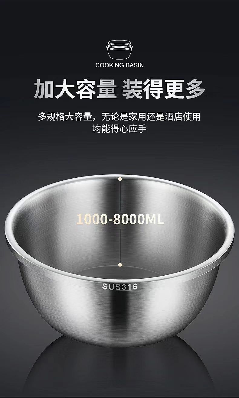 Tazón de Acero Inoxidable 316 de Grado Alimenticio adecuado para Tazón para Lavar Verduras, Tazón para Aceite Doméstico, Tazón para Sopa para Cocina para Batir Huevos y Cocinar Fideos