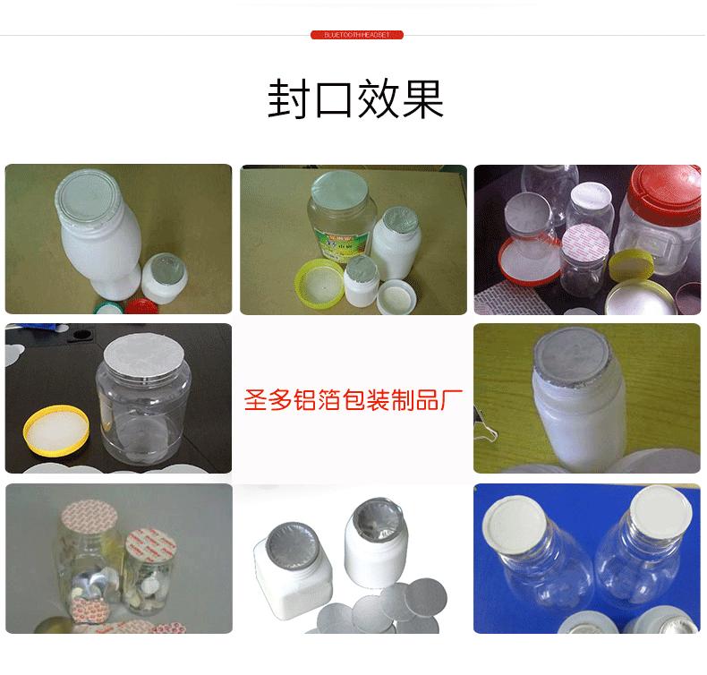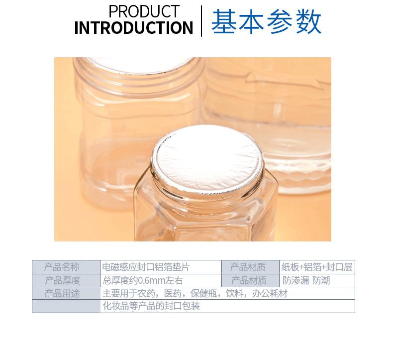 Las juntas de sellado de papel de aluminio son adecuadas para sellar recipientes hechos de diversos materiales como PET (poliéster), PE (polietileno), PP (polipropileno), PVC (cloruro de polivinilo), PS, ABS, vidrio, etc. Se utilizan ampliamente en las industrias alimentaria, farmacéutica, cosmética, de pesticidas, aceite de motor, detergentes, productos para el cuidado del cabello, alcohol y otras. Tienen las funciones de prevenir fugas, preservar la frescura, prevenir el deterioro, ser antifalsificación y antirrobo, y ser a prueba de humedad.