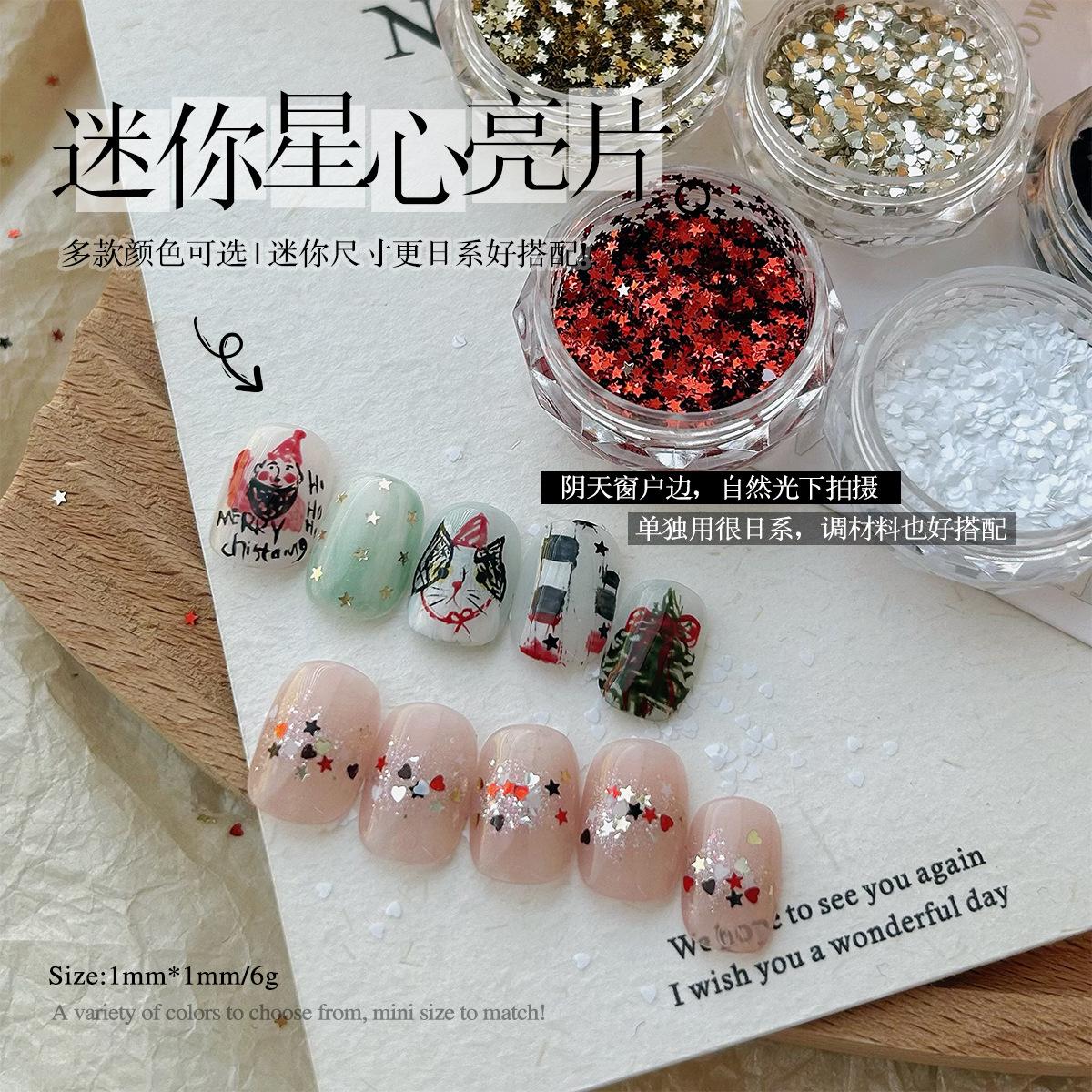 Lentejuelas para arte de uñas de estrella de cinco puntas ultradelgadas mini lentejuelas pequeñas arte de uñas de punto de onda corazón de amor material para uñas de uso