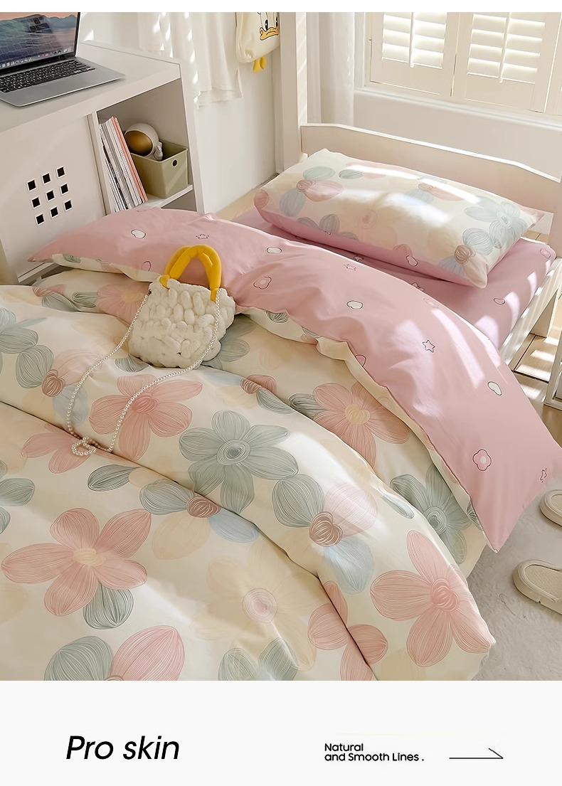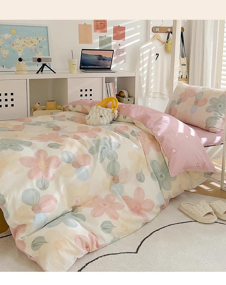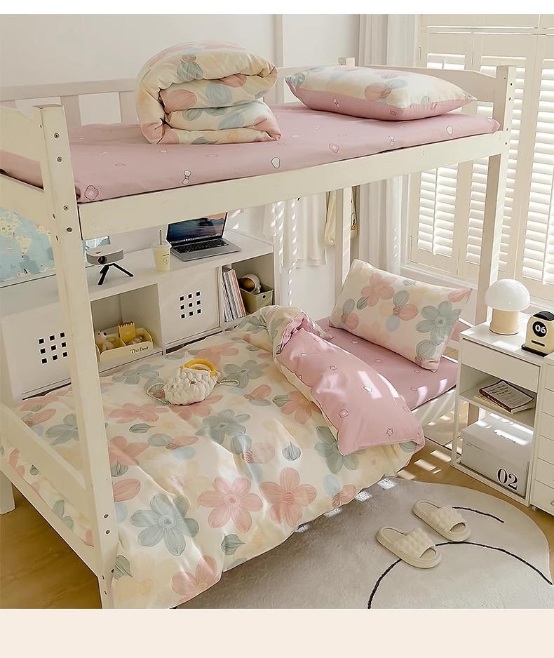 Juego de Algodón de Tres Piezas de Ropa de Cama para Dormitorio Universitario Sábanas de Algodón Puro Funda de Edredón Sábanas de Cama Juego de Verano de Cuatro Piezas
