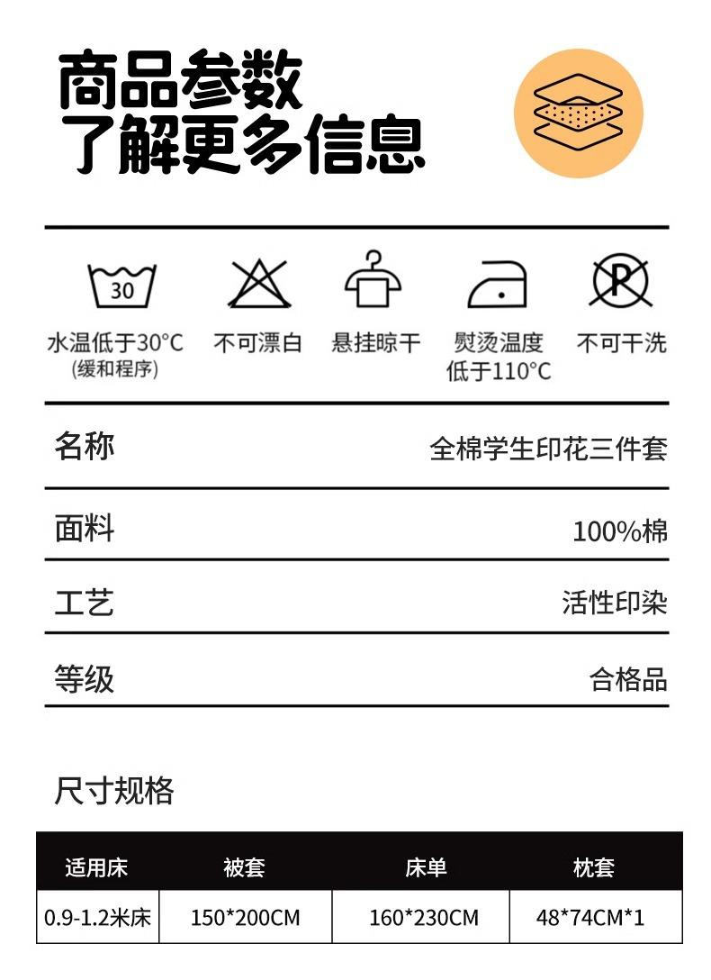 0.9m student bed three-piece set [quilt cover 150x200cm bed sheet 160x230cm], 1.2m bed sheet three-piece set [...