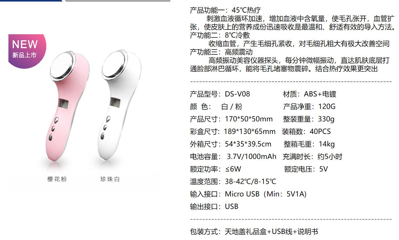 Dispositivo de Belleza de Compresa Caliente y Fría Transfronterizo, Dispositivo Introductor de Esencia Facial, Dispositivo Reductor de Poros con Compresa de Hielo, Máquina de Compresa Fría por Conducción Térmica Recargable para el Hogar
