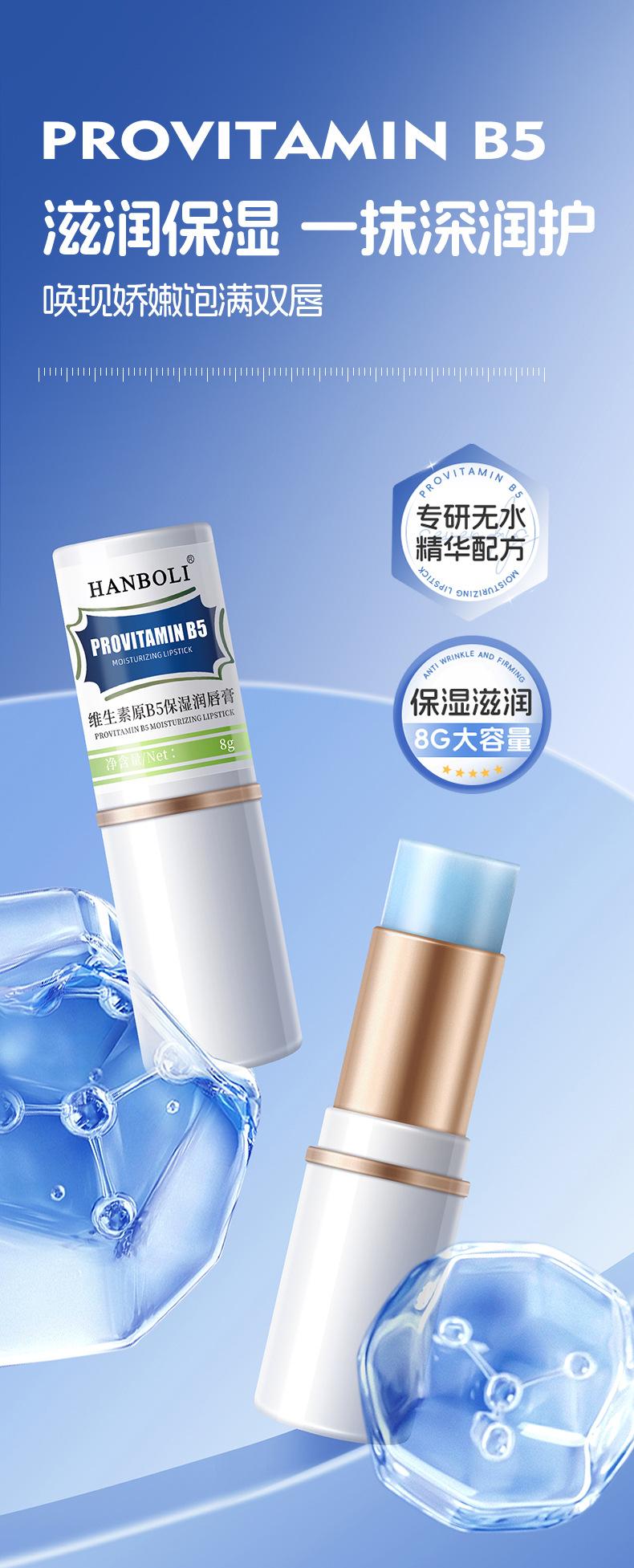 Bálsamo Labial de Vitamina B5 Hidratante Humectante Anti-agrietado Cuidado Labial de Otoño e Invierno Esencia Refrescante y no grasosa Lápiz Labial