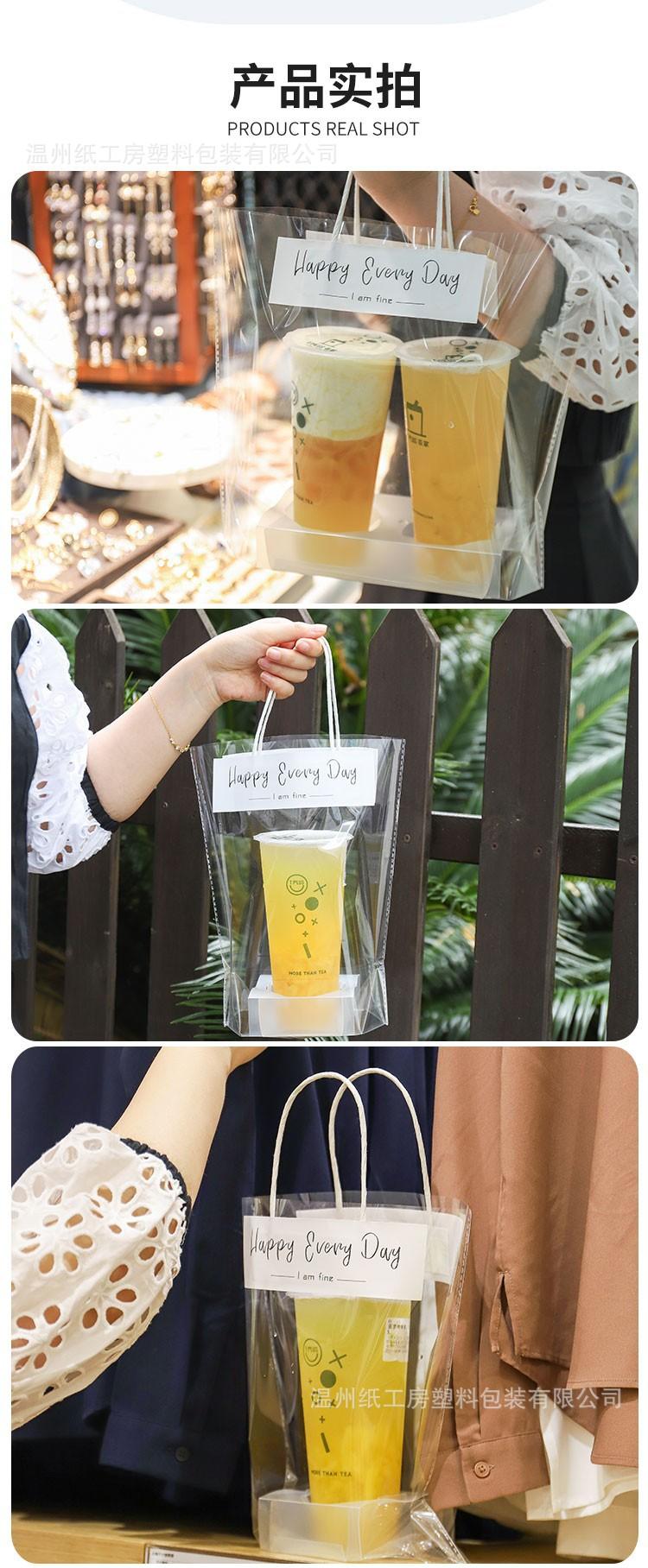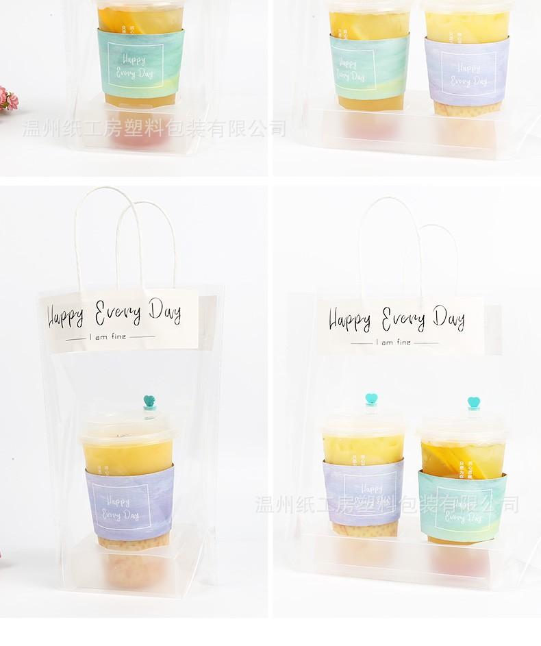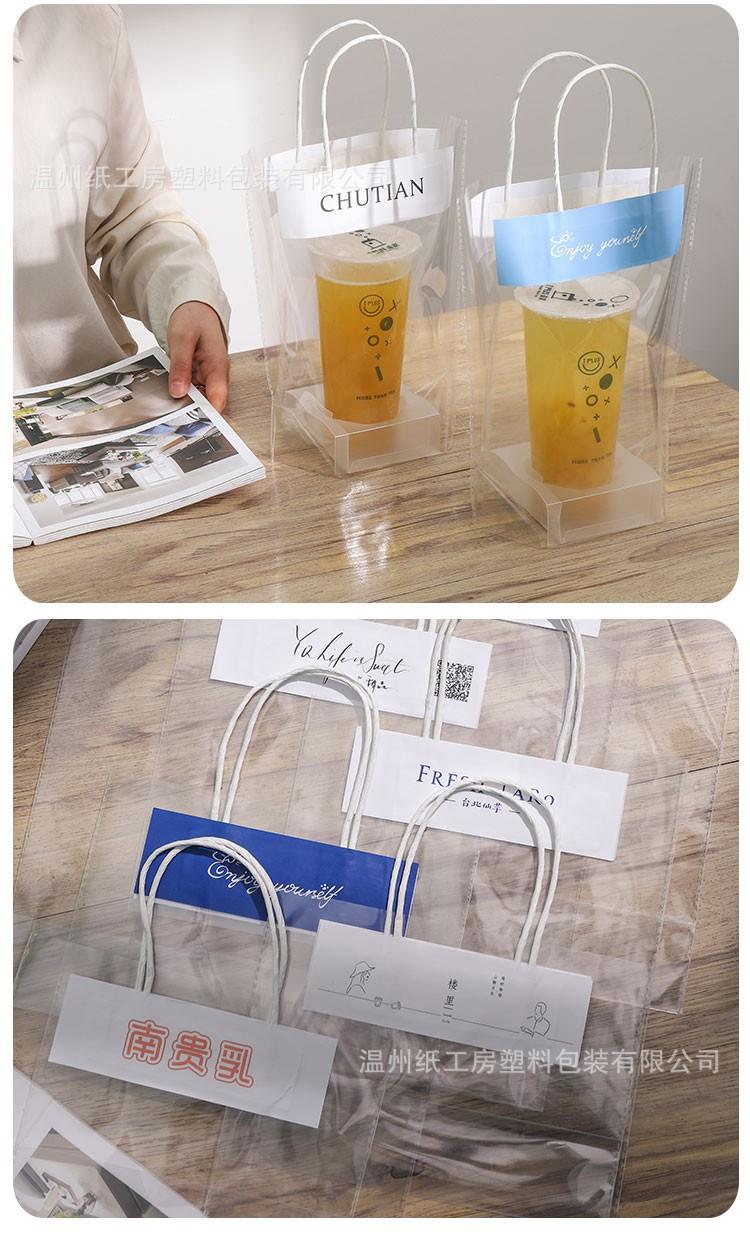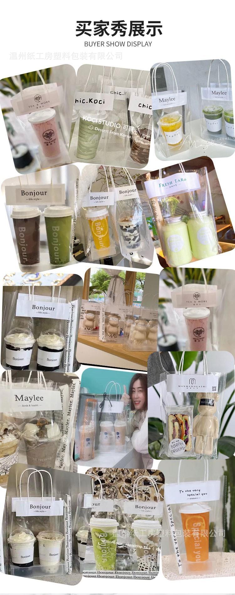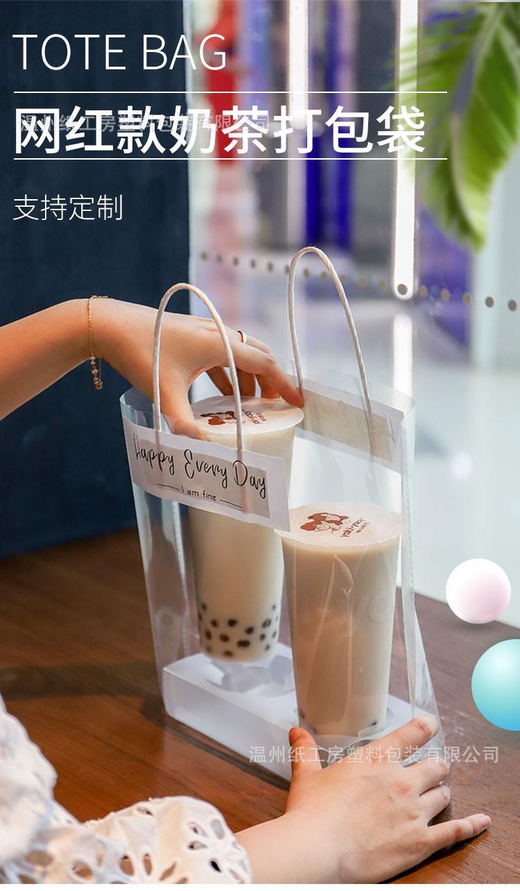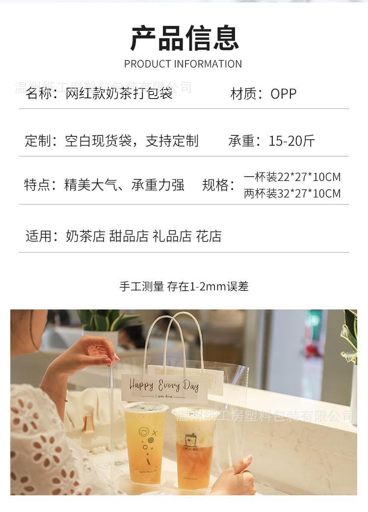 Taller de papel bolsa de té de leche transparente bolsa de embalaje opp rojo neto bolsa de té de leche para llevar bebida café embalaje para una taza doble