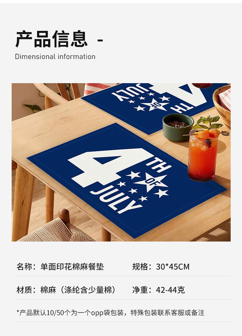 Mantel Individual del Día de la Independencia Transfronterizo Aislamiento para Mesa de Comedor Servilleta Impermeable para el Hogar Mantel Rectangular Aislamiento Mat Anti-escaldaduras