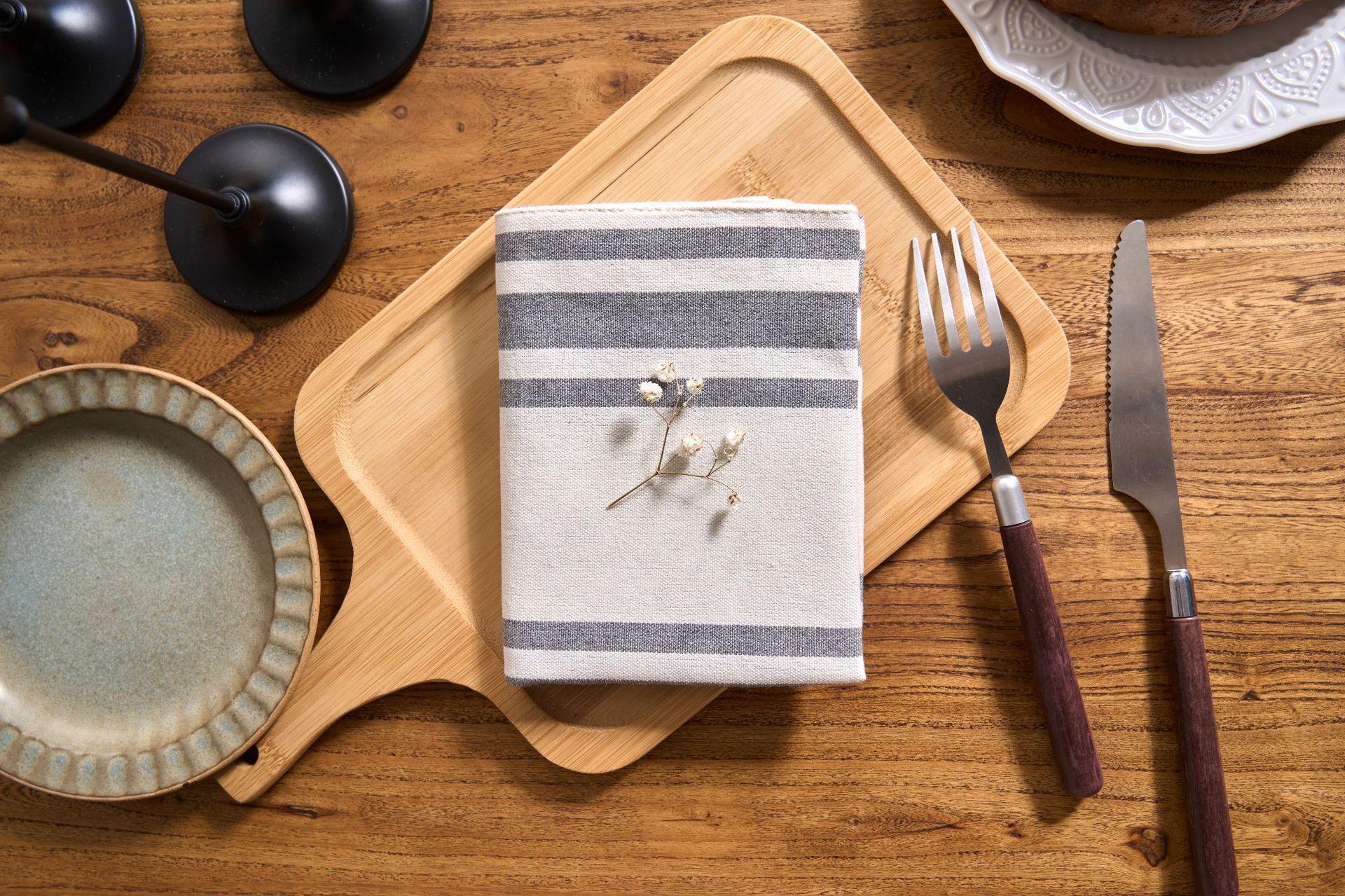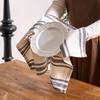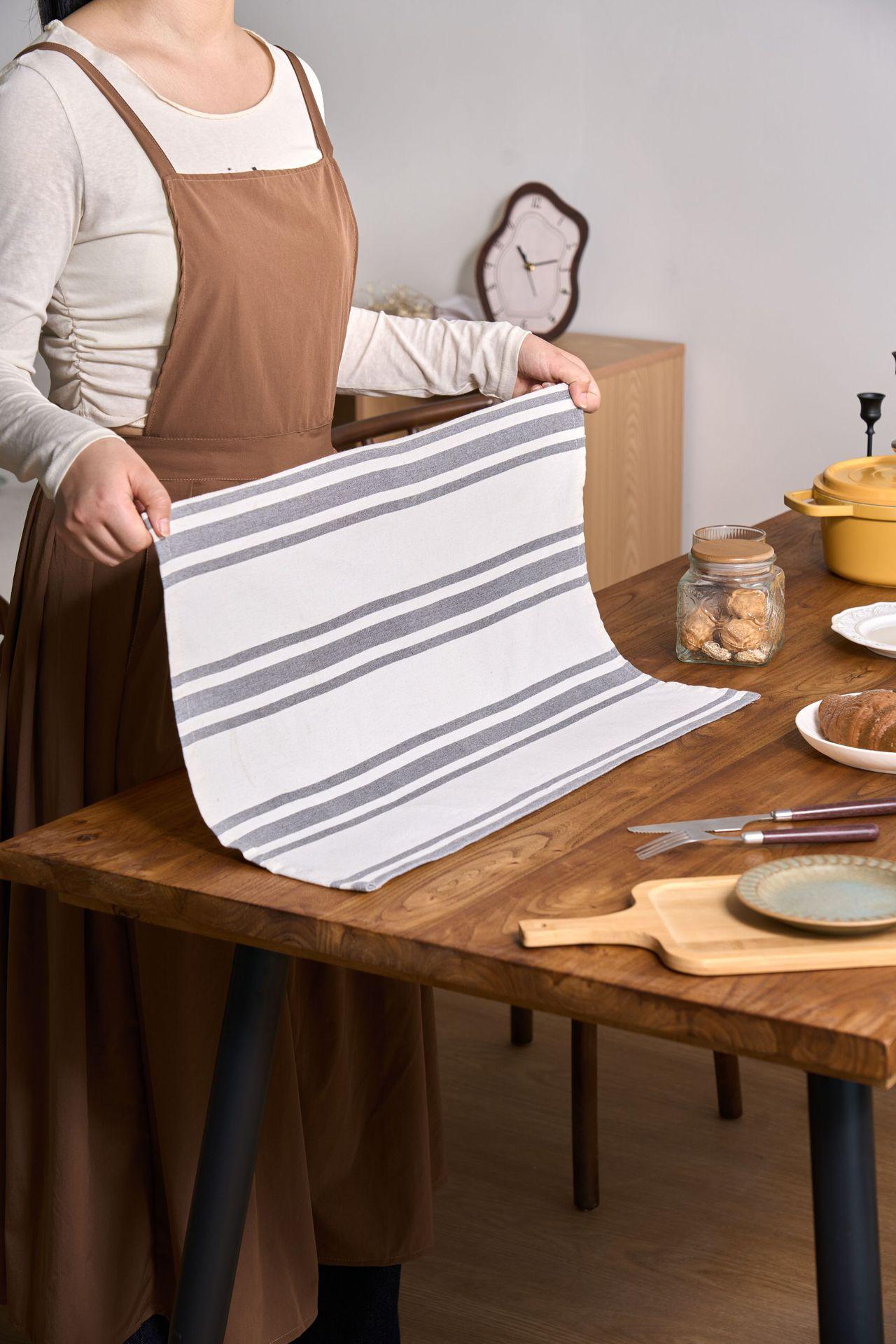 Yiman Qiyun Estilo Nórdico Servilleta de Tela Gris Blanco Rayas Finas Tela Estampada Fondo de Mesa de Comedor Decorativo Paño para Boca Paño para Limpiar Vasos