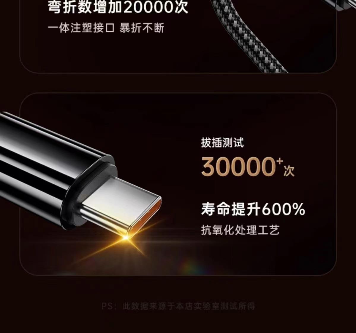 Type-c flexible rubber cable [folding-resistant upgraded version] supports super fast charging