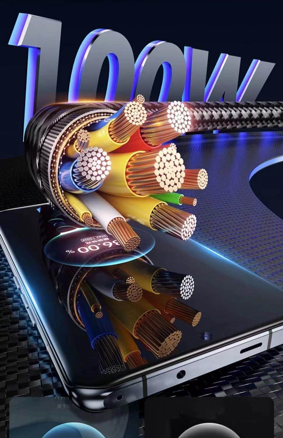Cable de datos Typec 6A carga rápida 100w66W carga súper rápida cable de carga tejido para Huawei Apple 14 Android