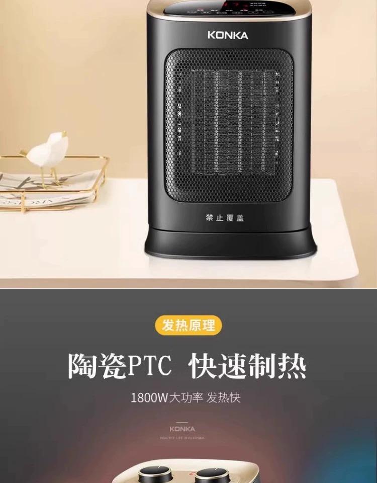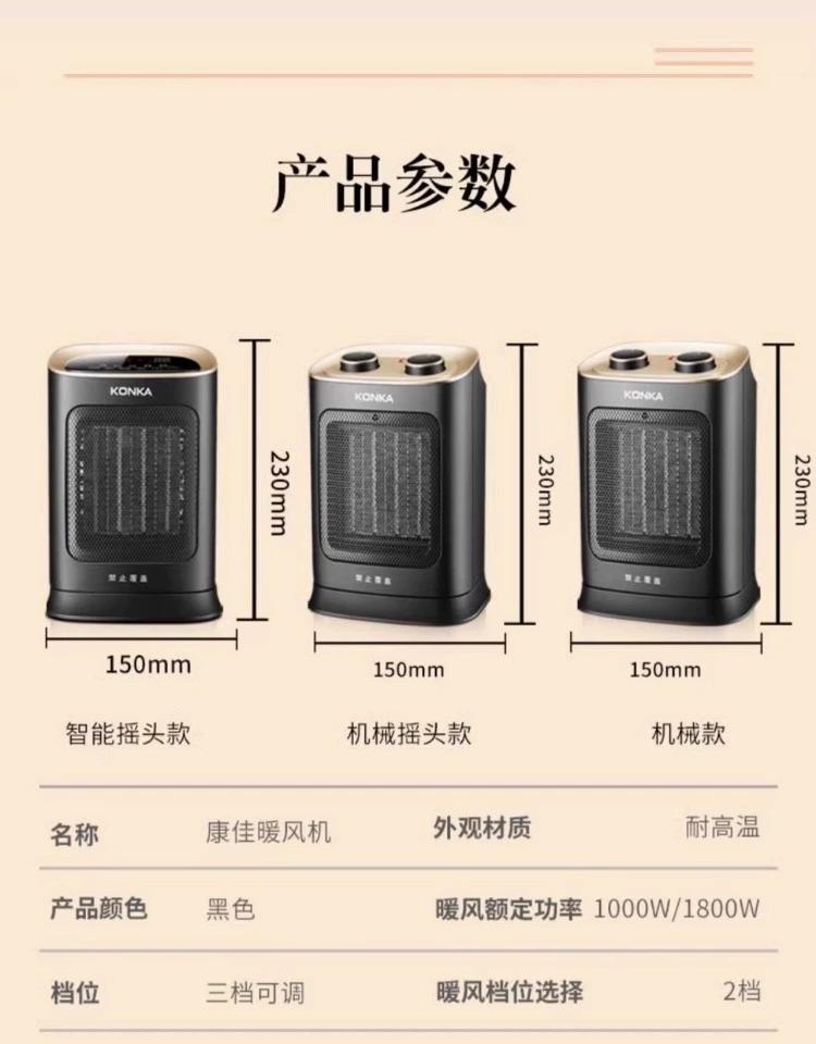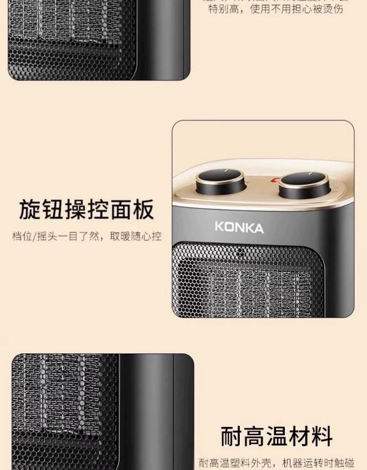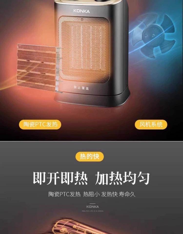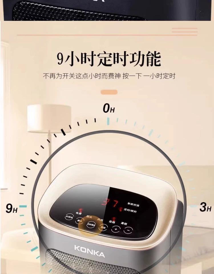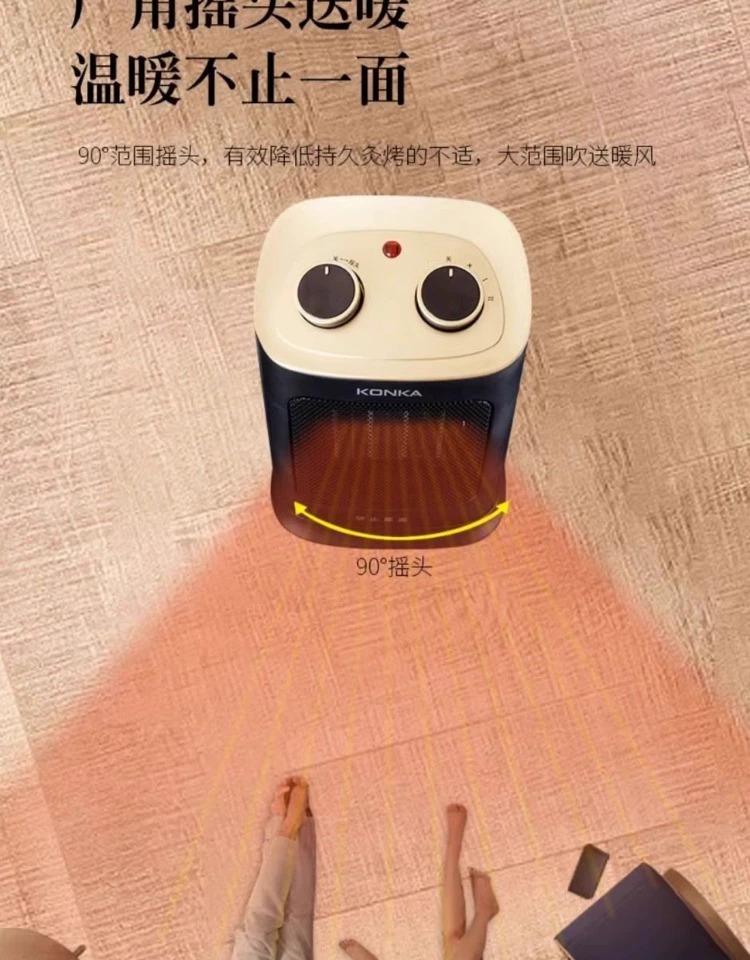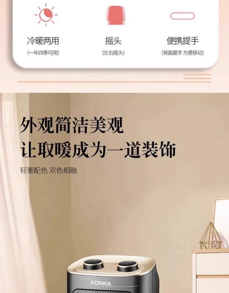 Calentador Konka Ventilador de Aire Caliente Calentador Eléctrico Baño Oficina Calentador Eléctrico Calentador Enfriamiento y Calefacción Doble Uso Control Inteligente de Temperatura