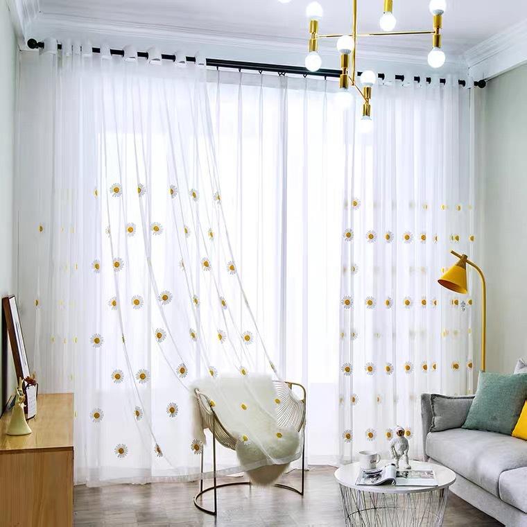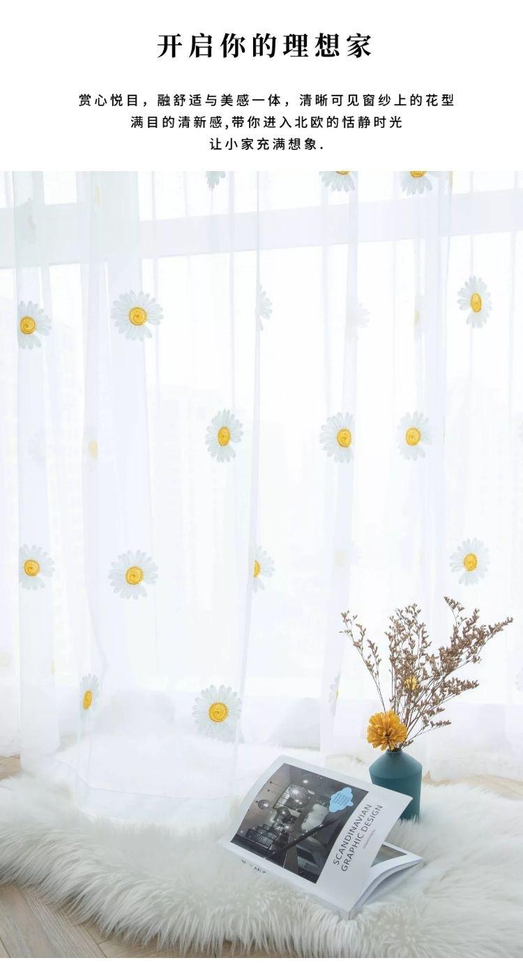 Cortina de hilo blanca bordada semitransparente moderna simple fresca pequeña margarita nueva cortina de hilo partición de pantalla de ventana hilo para mirador
