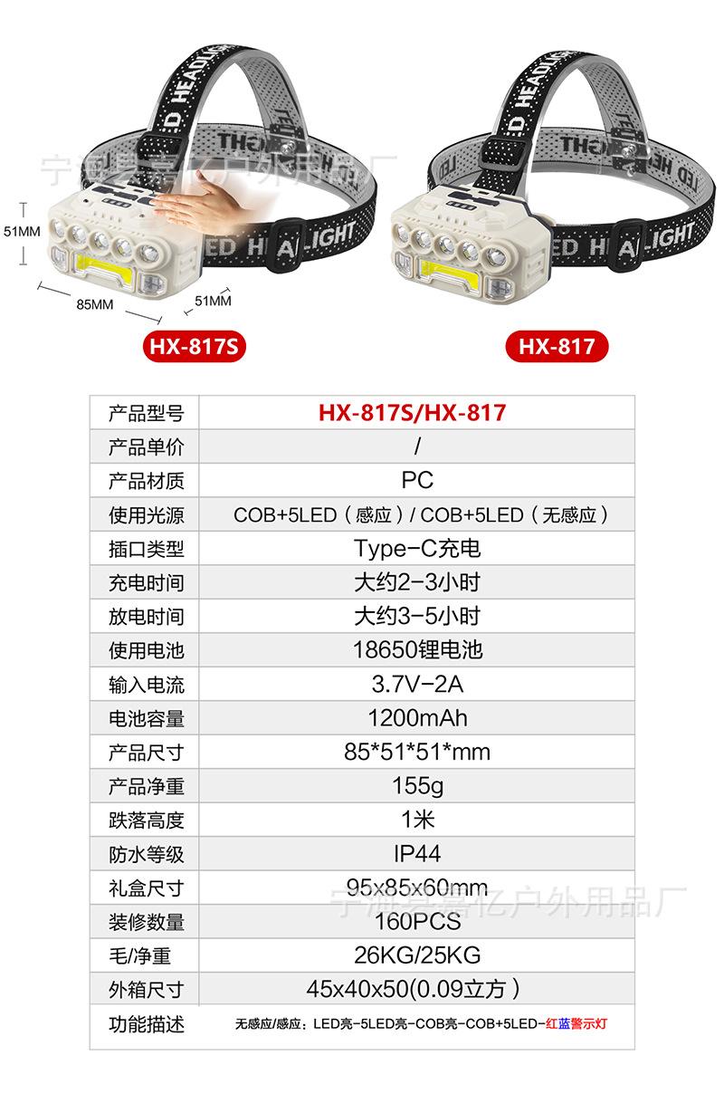 Hx-817 induction headlight-red and blue flash, Hx-815 sensor headlight-red light, Hx-816 sensor headlight-red ...