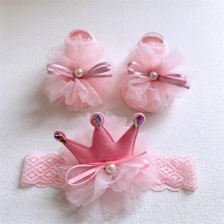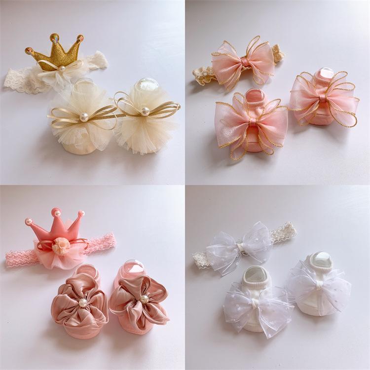 Bebé Bebé Banda para el Cabello Set de Calcetines Bebé Princesa Lindo Tocado Regalo Luna Llena Cien Días de Nacido Accesorios para el Cabello
