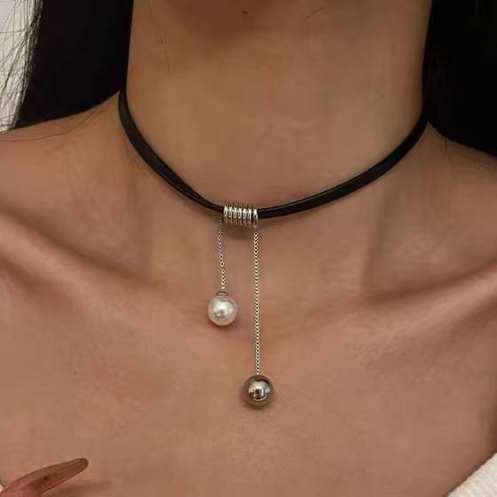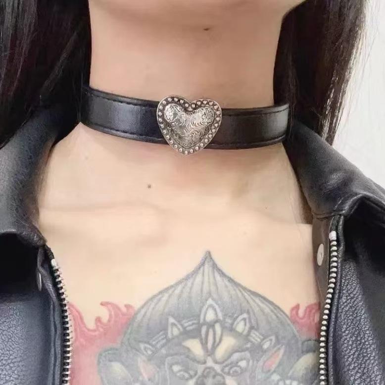 Black leather bell collar x4037, Pearl tassel choke collar x3882, Black leather rope letter collar x3622, Punk...