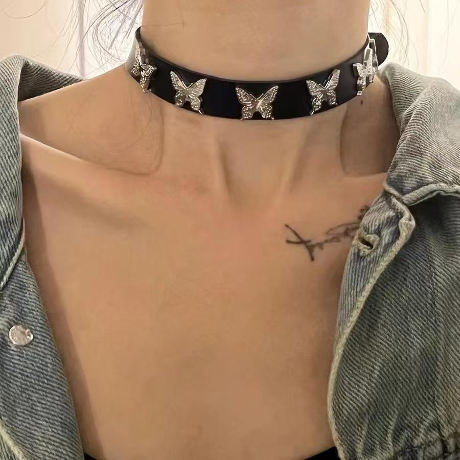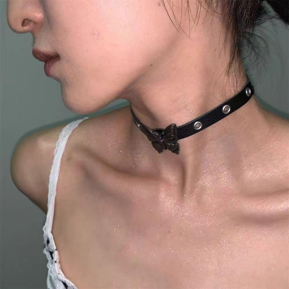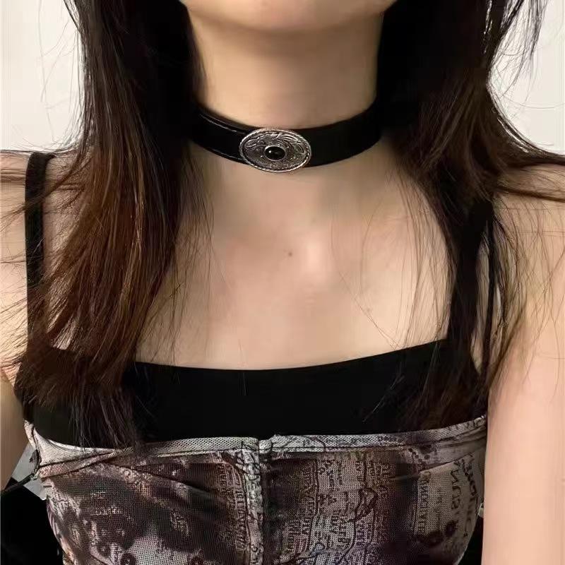 Collar de Cuero Estilo Punk Gótico Diablo Collar Dama Diseño Nicho Subcultura Gargantilla Cadena Clavícula