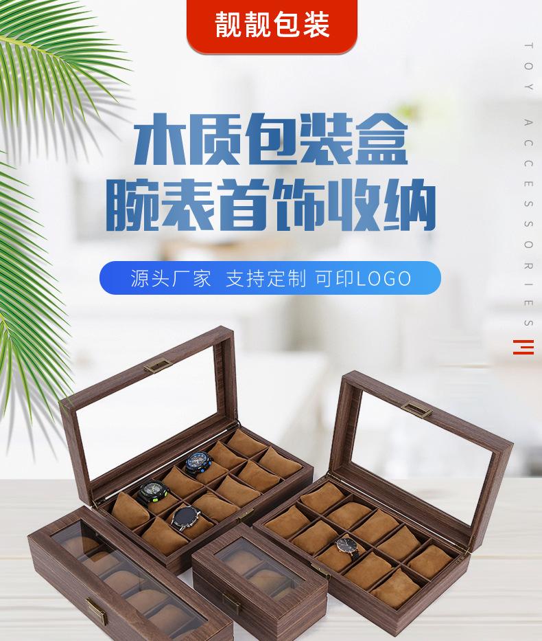 Caja para Reloj de Cuero con Grano de Madera, Multiposición, Almacenamiento de Joyería, Caja de Embalaje, Caja de Embalaje con Ventana de Exhibición, Reloj Venta Caliente Transfronteriza