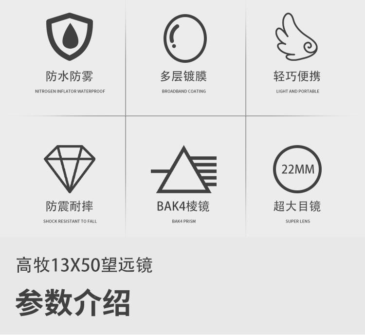 Telescopio Monocular 13X50 Impermeable Relleno de Nitrógeno de Alta Potencia HD Visión Nocturna con poca luz Telescopio Monocular para Exteriores Venta al por Mayor