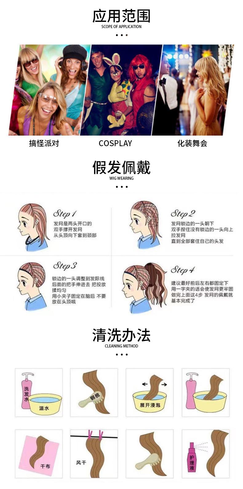 Descripción: Este es un nuevo set de pelucas coloridas lanzado por nuestra empresa. Hay más de diez colores para elegir. Después de recibir la peluca, necesita cuidarla. Péinela con un peine y alise el cabello, y se verá el efecto. Es normal que la peluca suelte un poco de pelo. Los compradores a quienes les moleste la caída de cabello, por favor no compren.