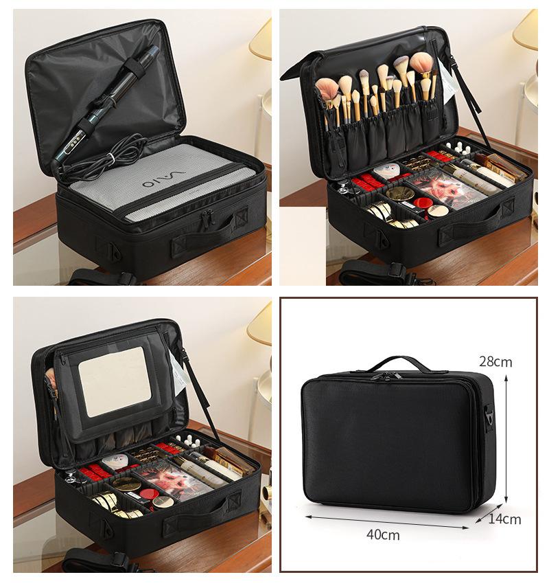 Bolsa de Cosméticos de Gran Capacidad para Mujer, Portátil para Viaje, Bolsa de Almacenamiento de Cosméticos, Estilo Ins, Bordado, Kit de Maquillaje de Uñas