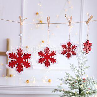 | Decoraciones navideñas colgantes de copo de nieve de madera rojos y blancos árbol de Navidad DIY colgantes decorativos de copo de nieve |
