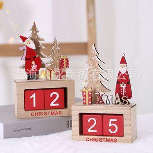 | Decoración navideña calendario de madera con forma de árbol de Navidad adornos de decoración de escritorio Navidad muñeco de nieve decoraciones juguete para niños |