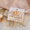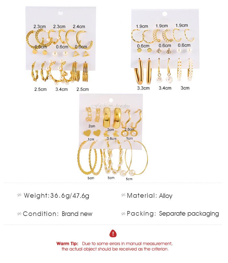 Nuevo Conjunto de 9 Pendientes Transfronterizos Exagerados de Perlas de Imitación Retro Europeo y Americano Ins Pendientes Geométricos de Aleación Traje Pendientes