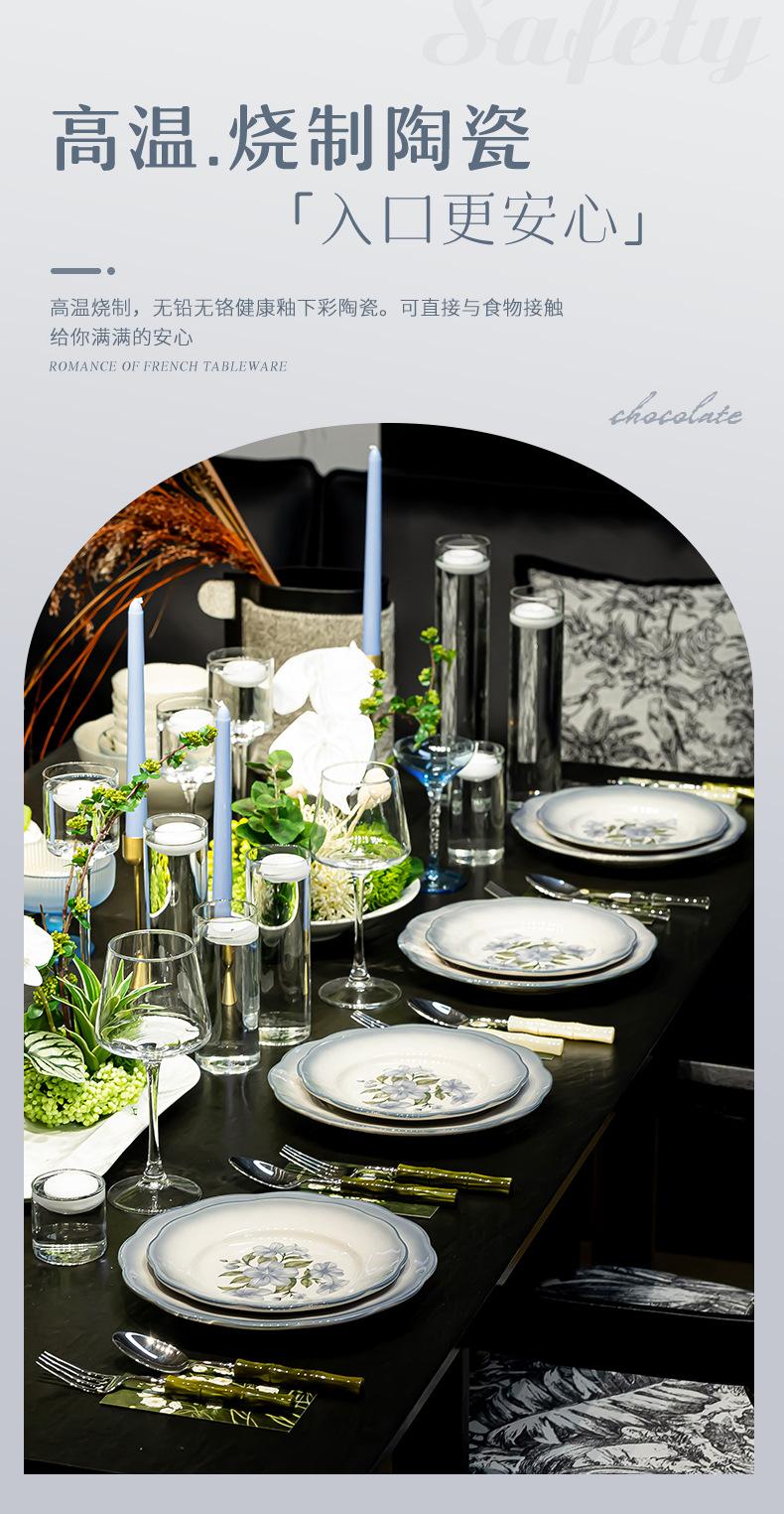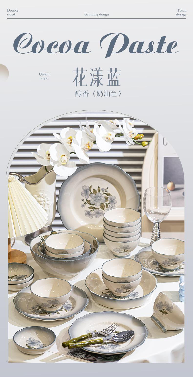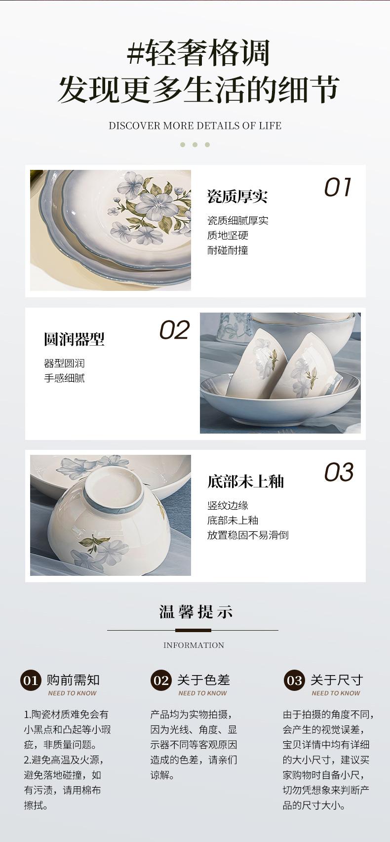 Vajilla de Aspecto Elevado, Platos de Lujo Ligero, Juego Completo de Tazones Creativos de Estilo Chino, Tazones para Sopa, Tazones y Platos de Cerámica, Juego de Vajilla con Color Bajo Cubierta