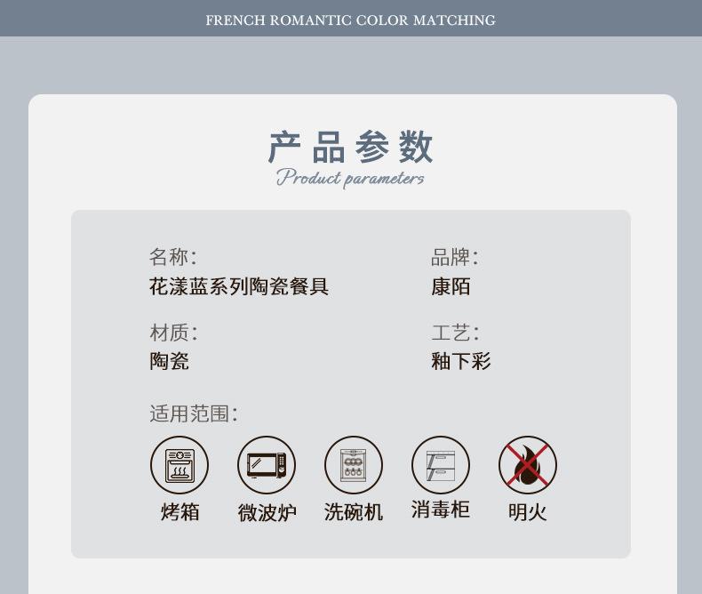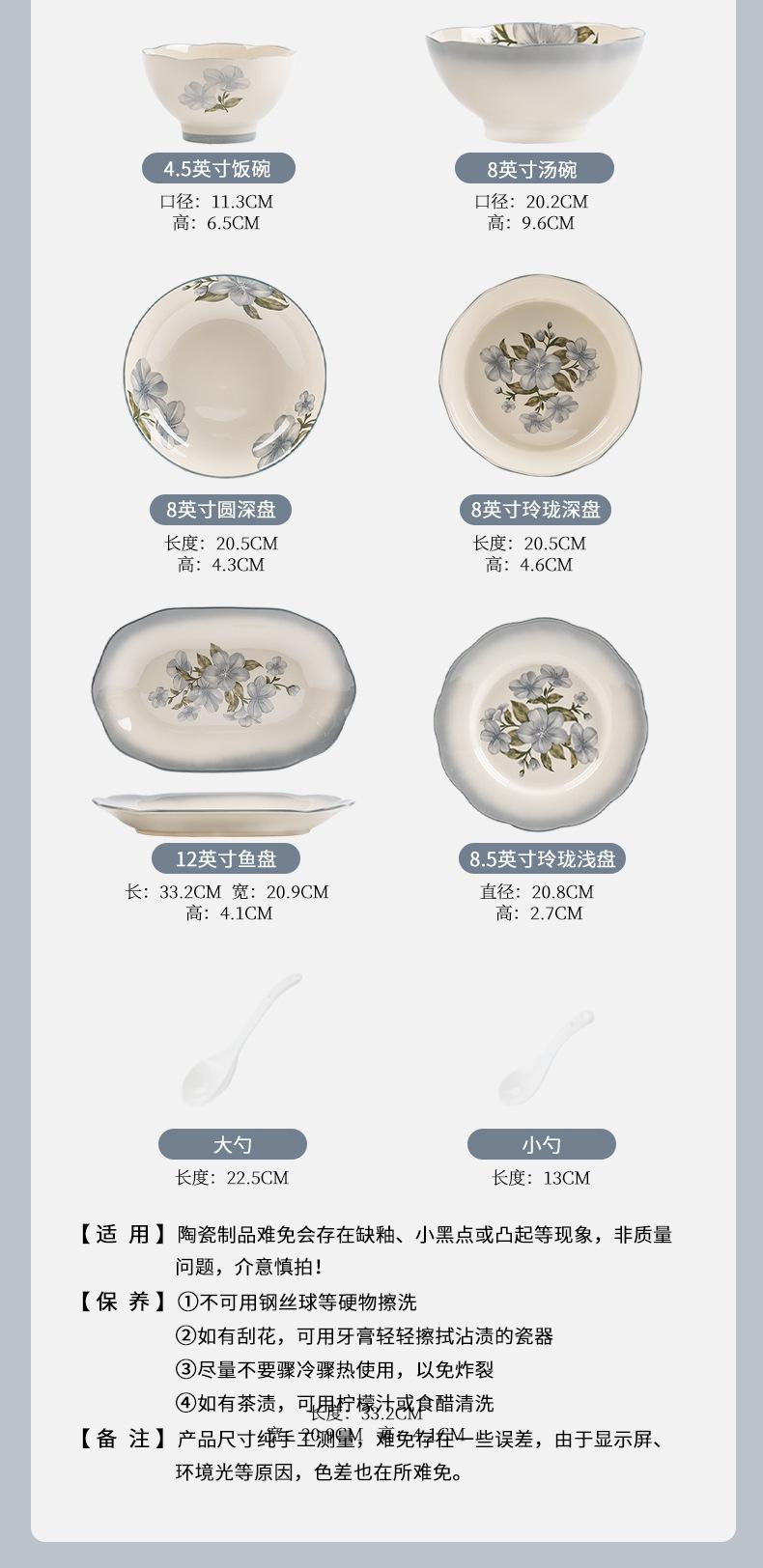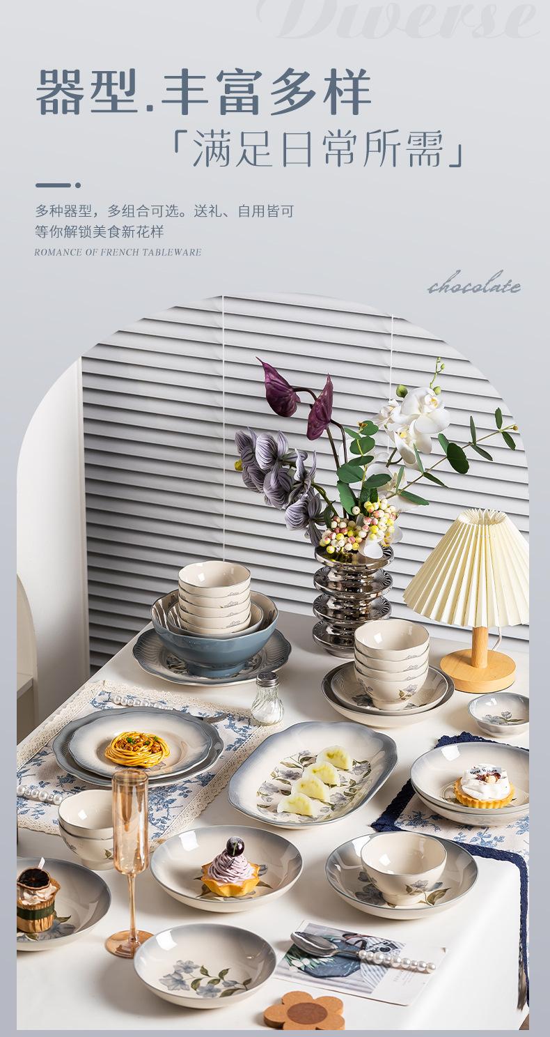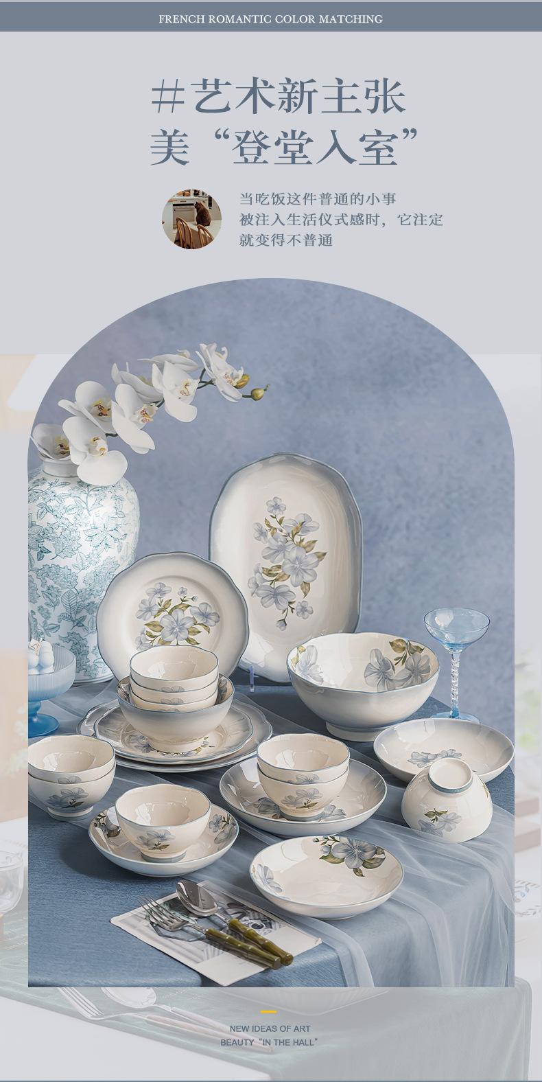 Flower blue - 4.5inch rice bowls, Flower blue- 8.5inch exquisite shallow plate, Flower blue- 8inch exquisite d...