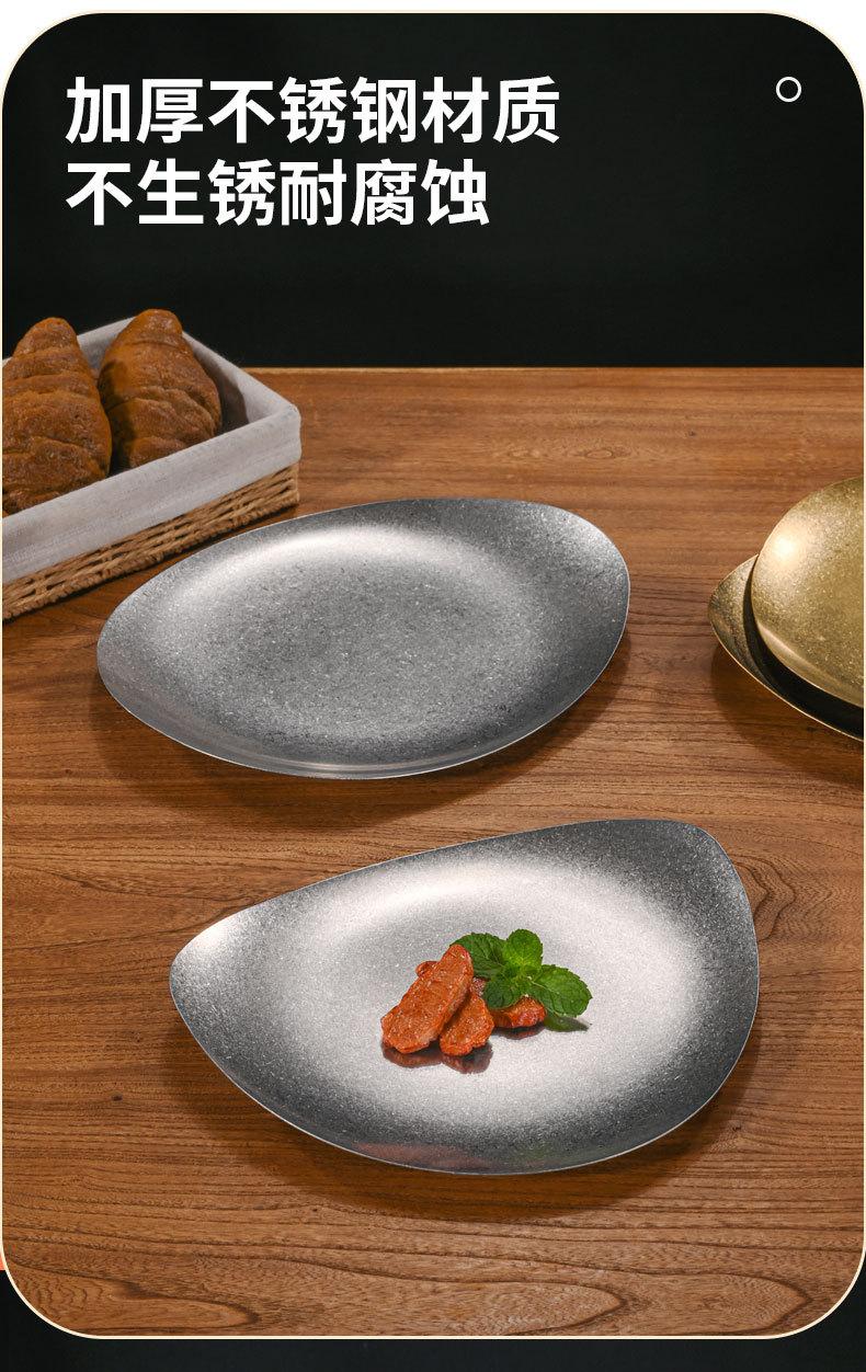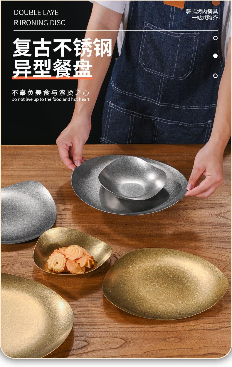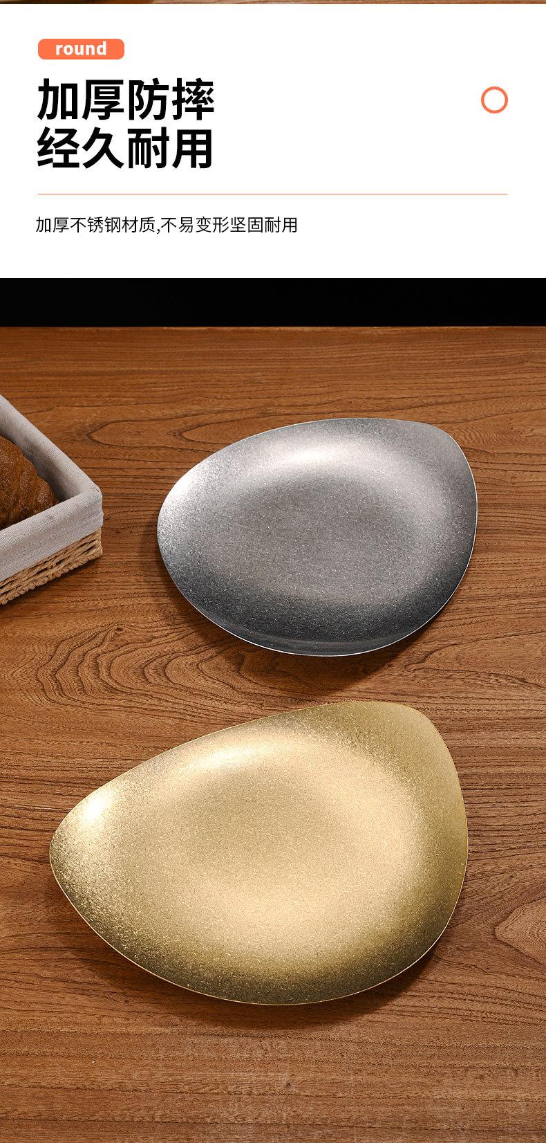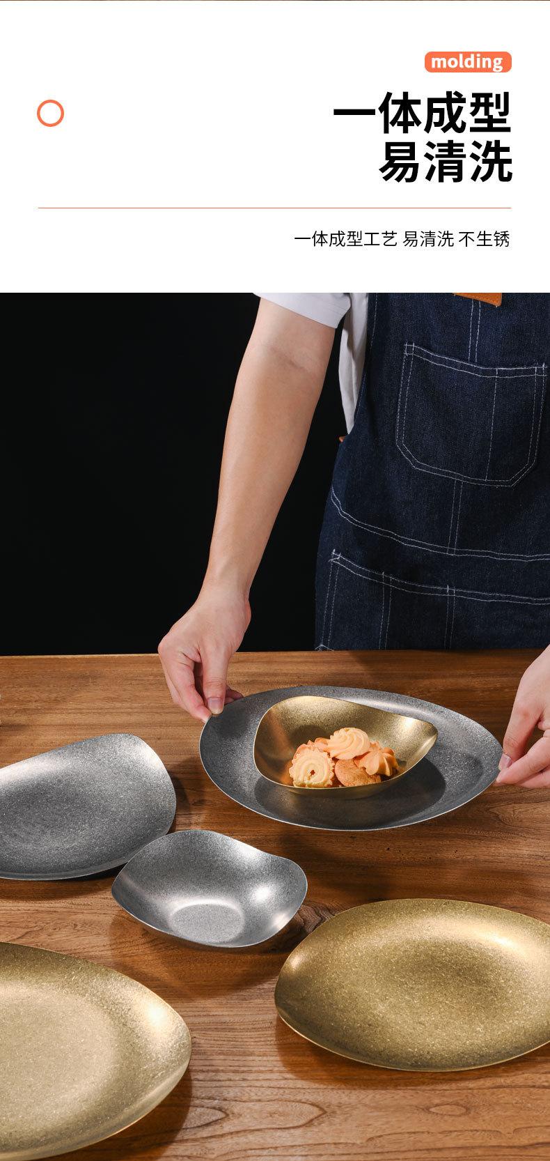 Plato Retro de Acero Inoxidable 304 con Forma Especial Plato Creativo Asimétrico para Cena Plato Dorado para Postre Plato Comercial para Comida Occidental Plato Plano
