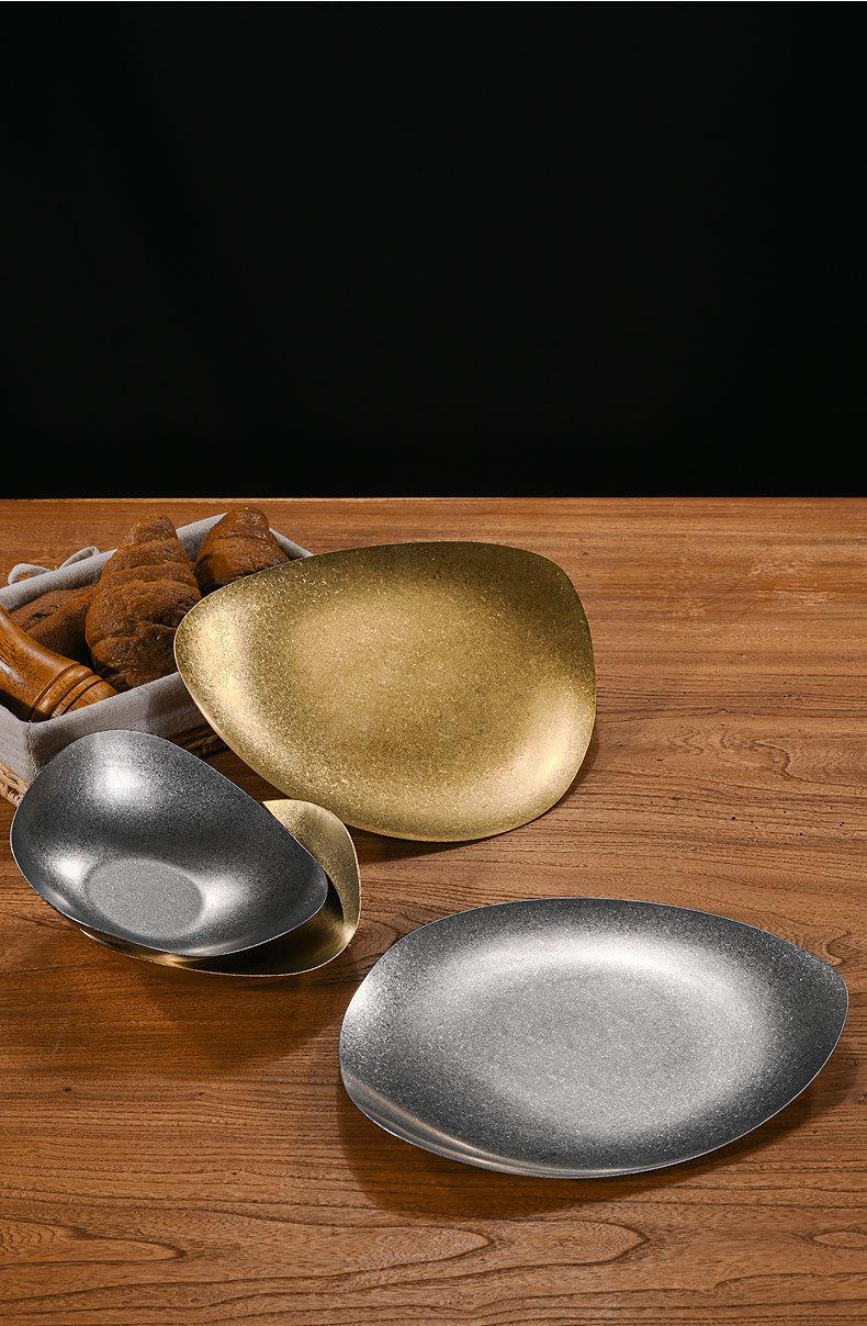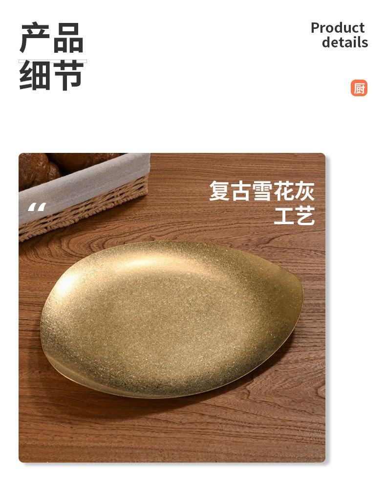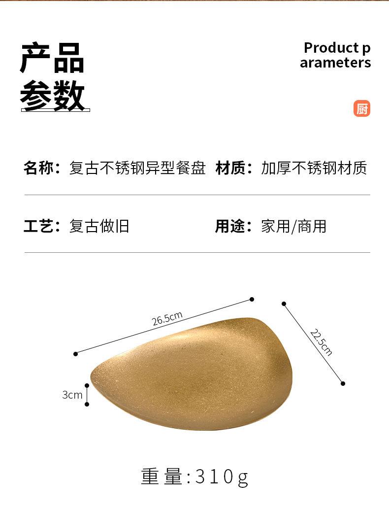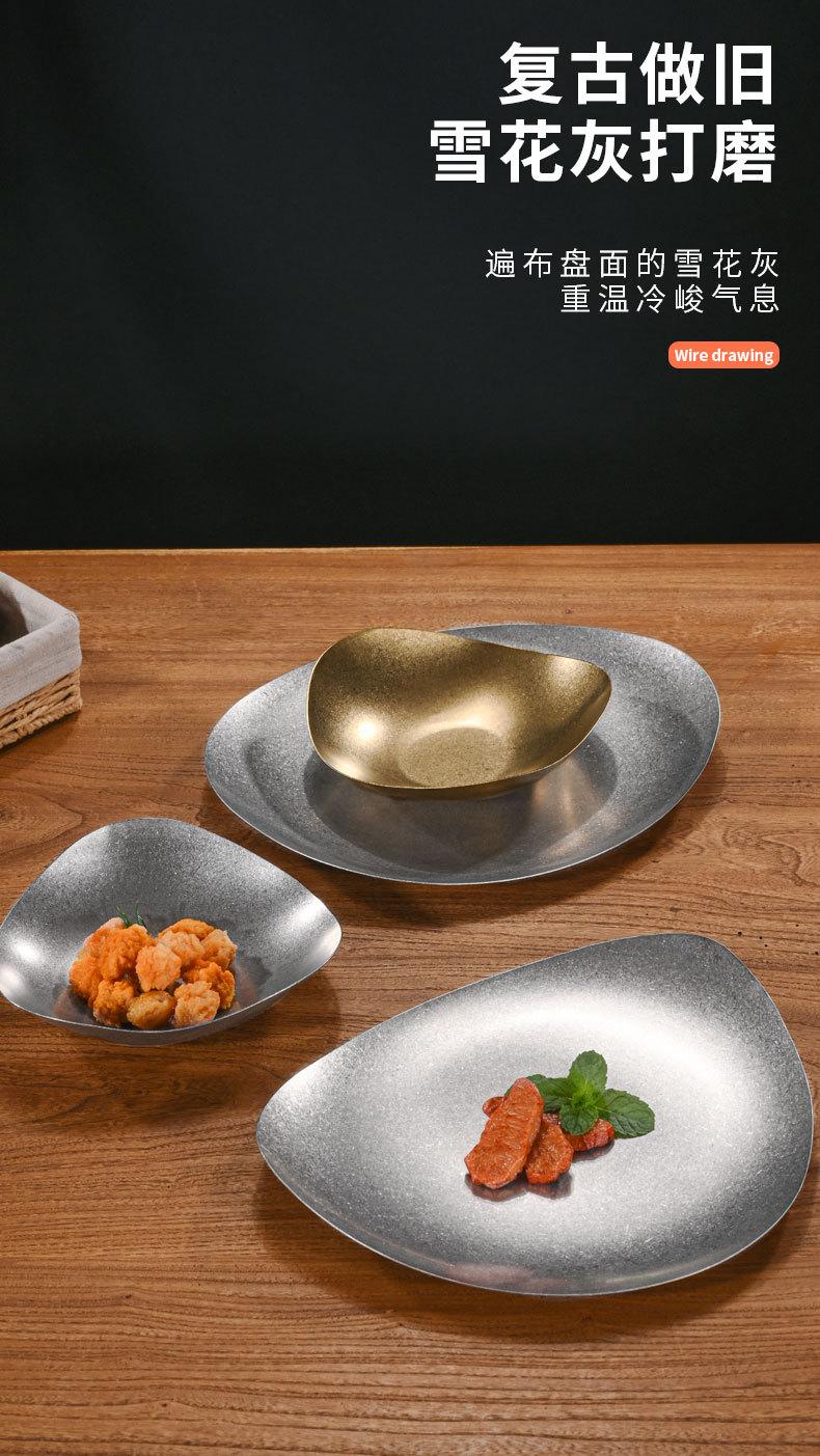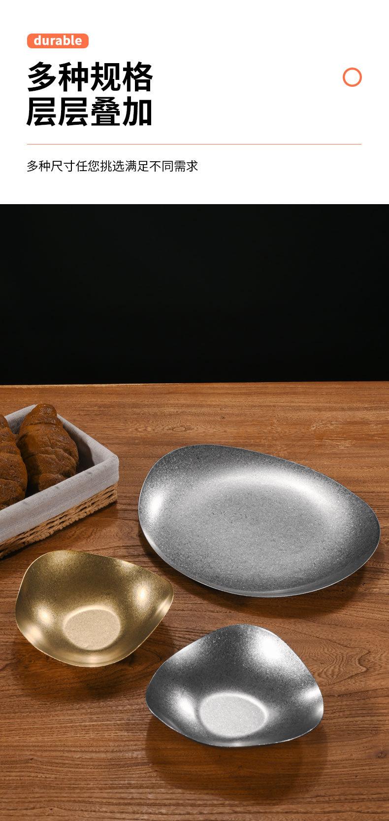Plato Retro de Acero Inoxidable 304 con Forma Especial Plato Creativo Asimétrico para Cena Plato Dorado para Postre Plato Comercial para Comida Occidental Plato Plano