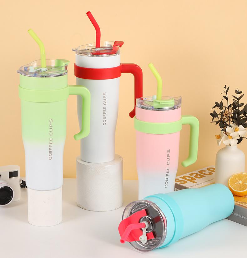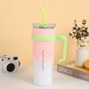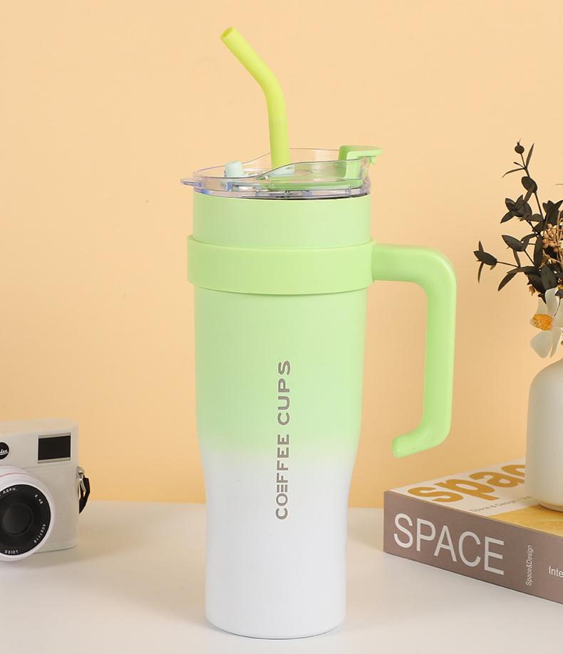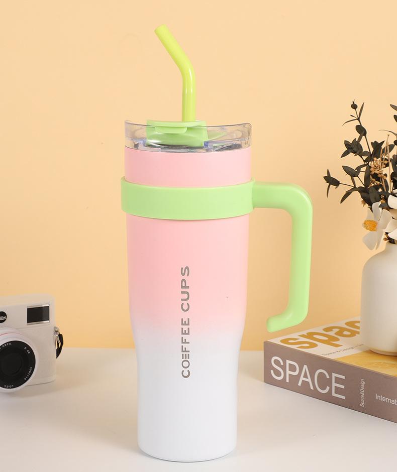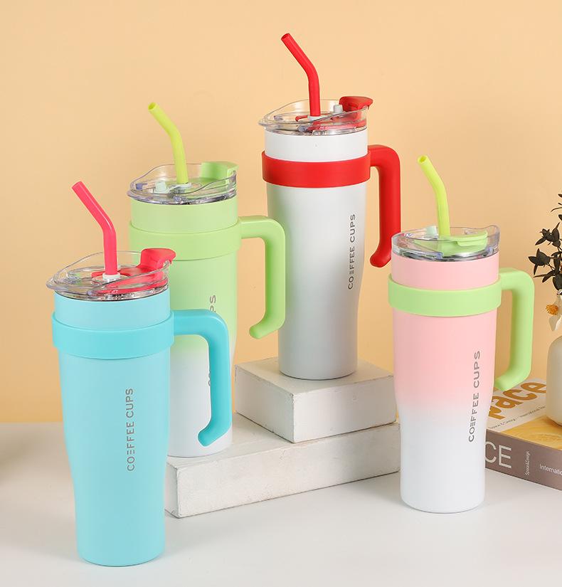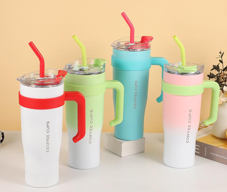 Vaso de Hielo de Acero Inoxidable 304 con Degradado Personalizado, Simple y Portátil, Gran Capacidad, Asa, Vaso para Coche, Vaso con Pajita, Vaso Termo