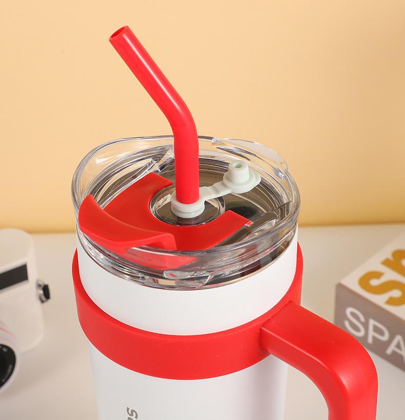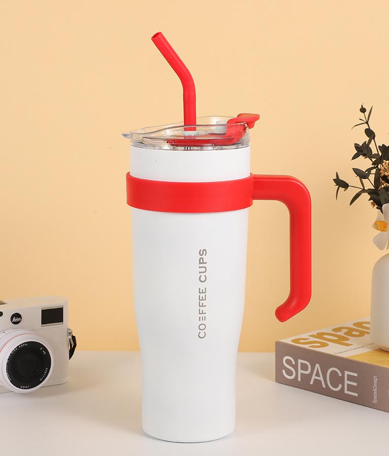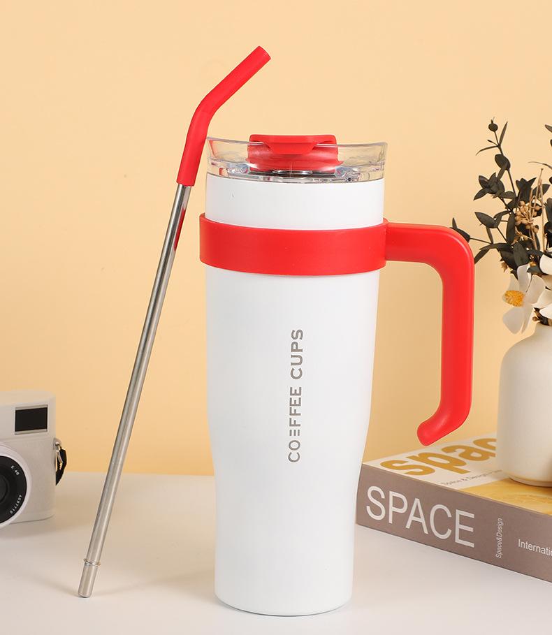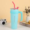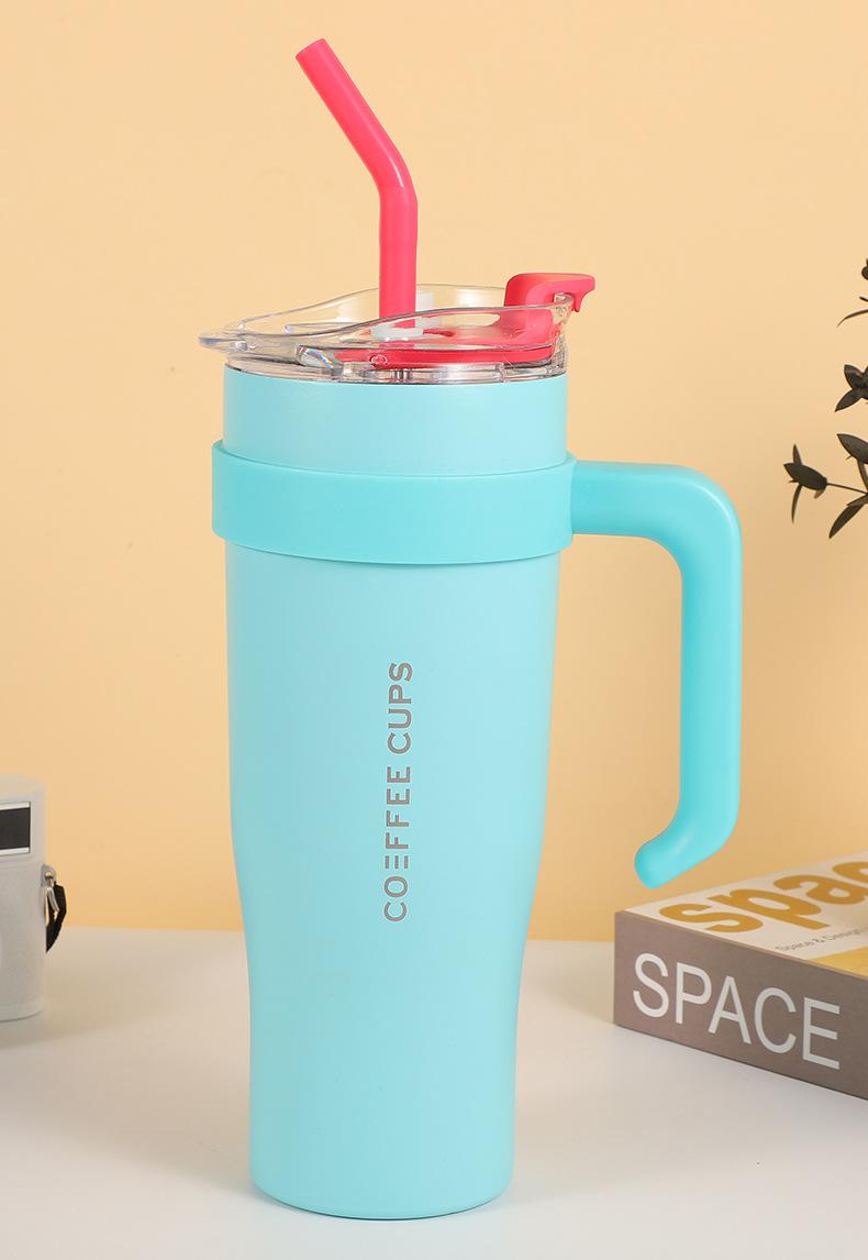 Vaso de Hielo de Acero Inoxidable 304 con Degradado Personalizado, Simple y Portátil, Gran Capacidad, Asa, Vaso para Coche, Vaso con Pajita, Vaso Termo