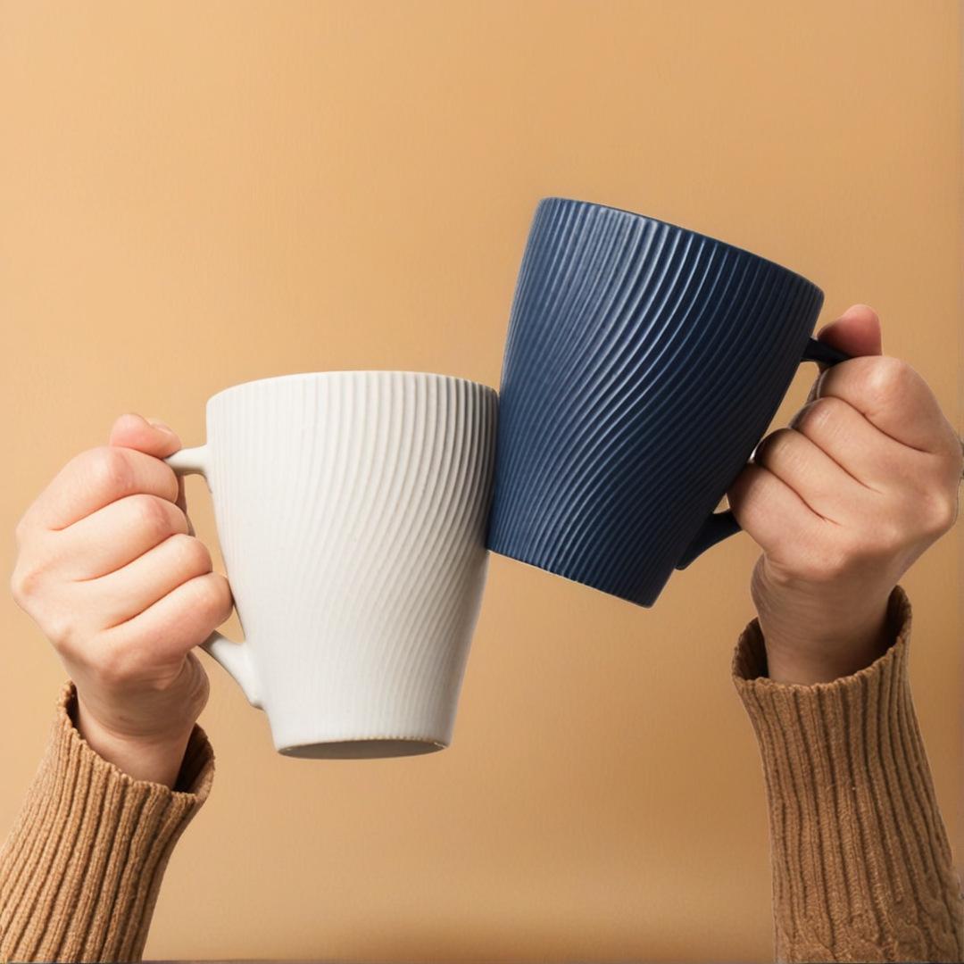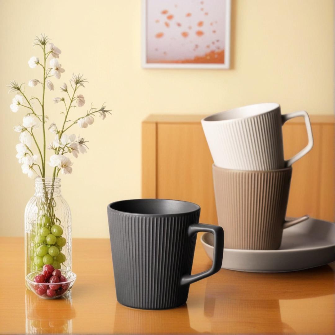 Taza Transfronteriza Taza de Cerámica Rayada Taza de Agua Taza de Café de Gran Capacidad Taza para Parejas de Oficina de Alto Valor Personalización