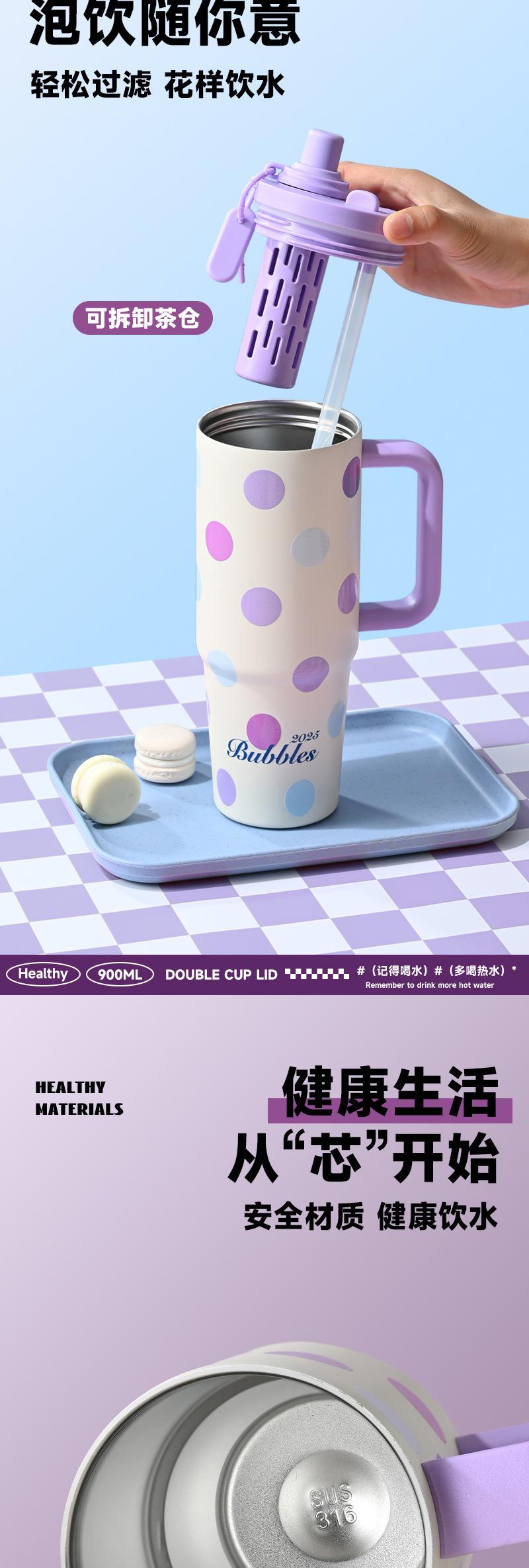 Taza de hielo para coche, termo de alto valor cromático con compartimento para té, portátil para oficina, taza de gran capacidad, taza para beber doble para coche