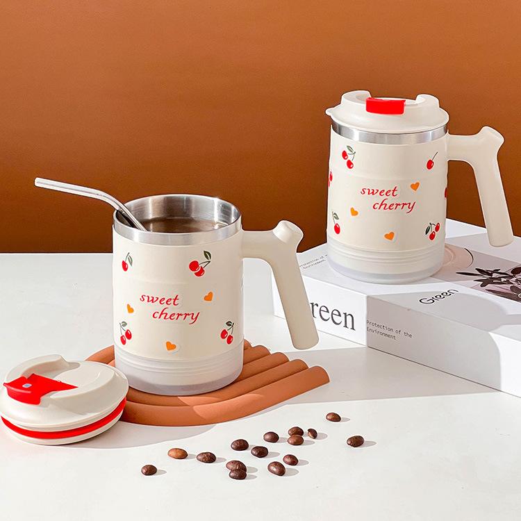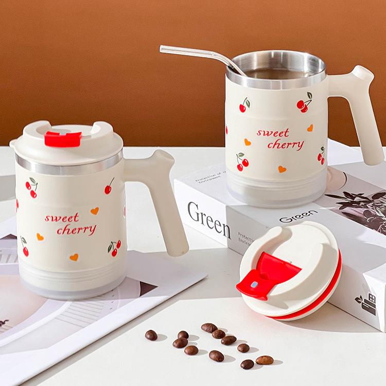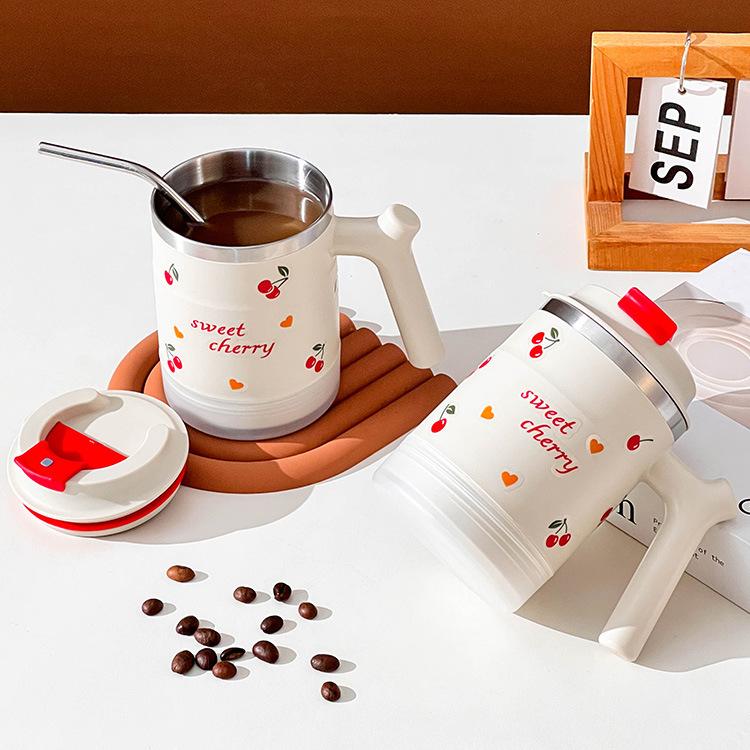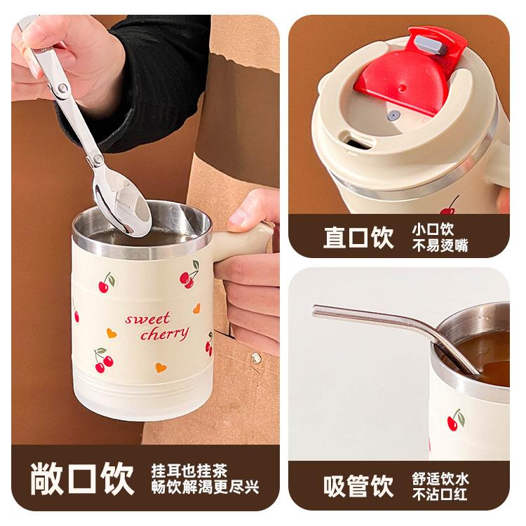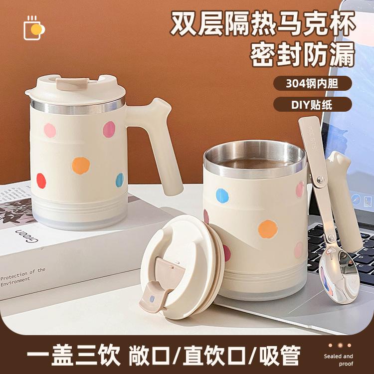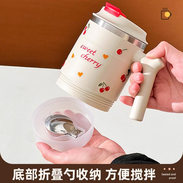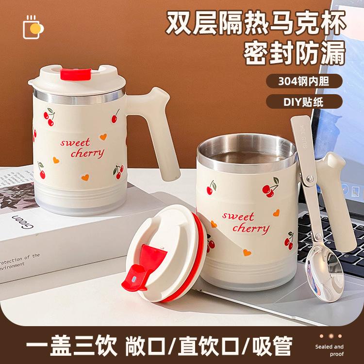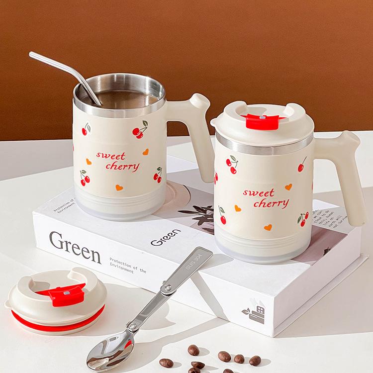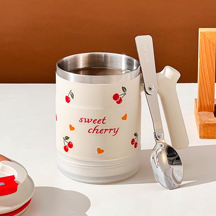 Taza de Verano de Acero Inoxidable 304 Taza de Café de Doble Capa con Cuchara Taza para Leche de Soya para Desayuno de Oficina Regalo con Logotipo