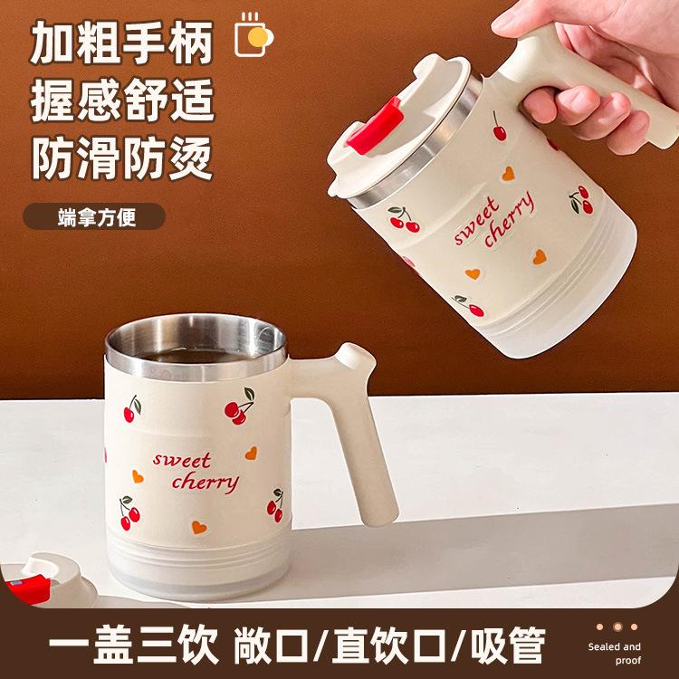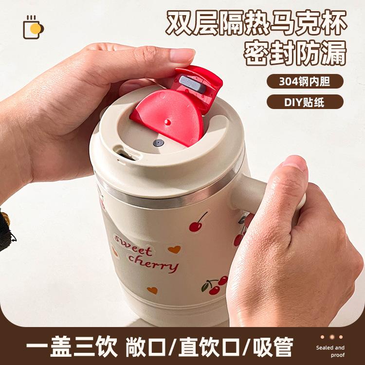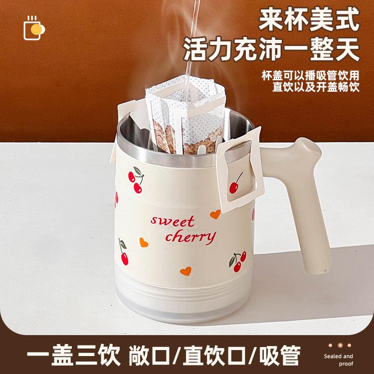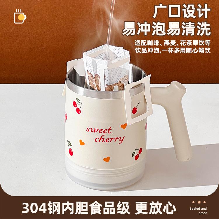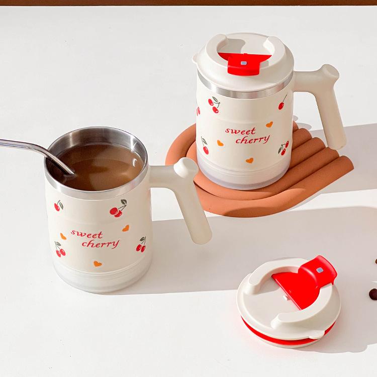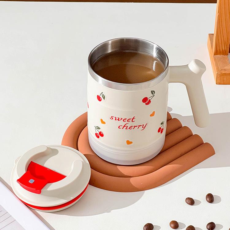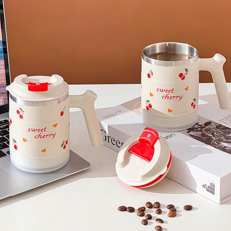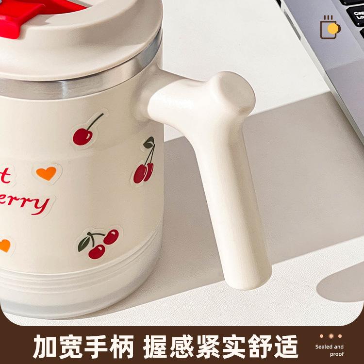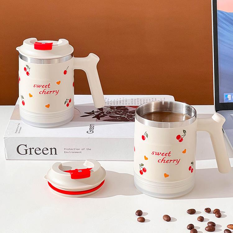 Taza de Verano de Acero Inoxidable 304 Taza de Café de Doble Capa con Cuchara Taza para Leche de Soya para Desayuno de Oficina Regalo con Logotipo