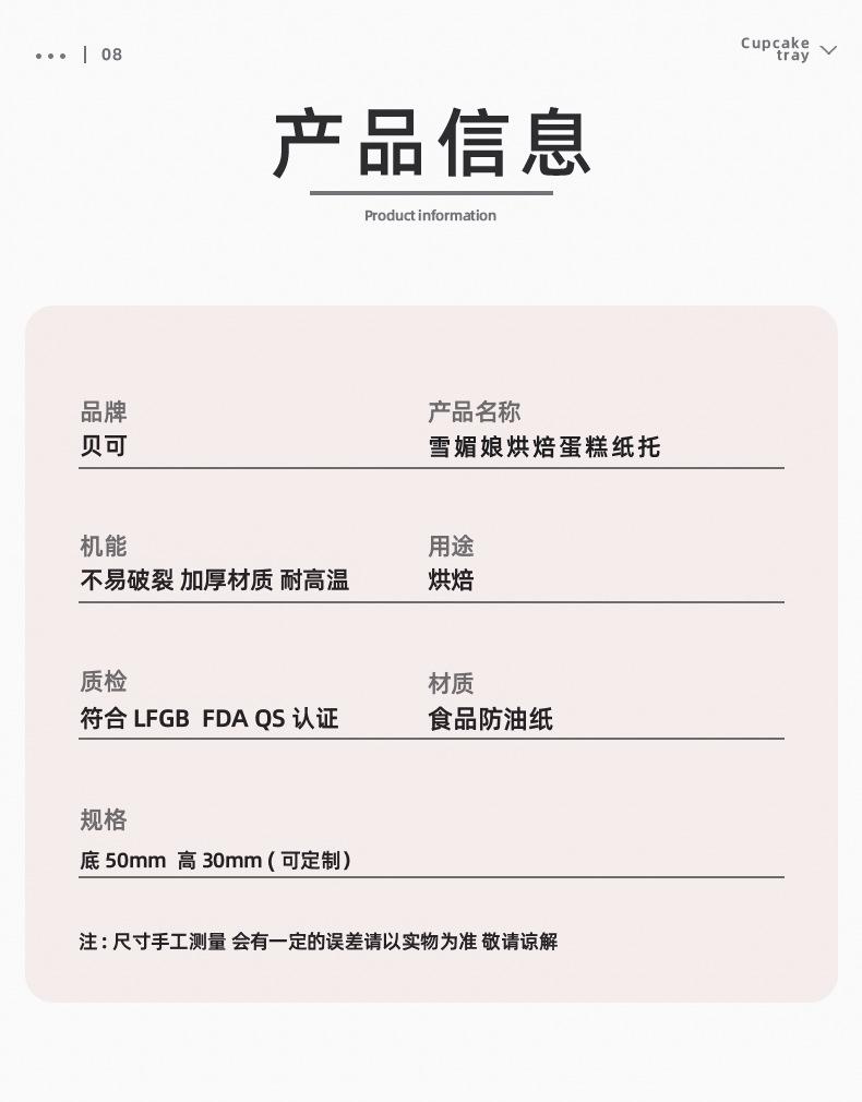 Bandeja de Papel Desechable para Pastel Snow Mei Niang Grado Alimenticio Resistente a Altas Temperaturas y al Aceite Vaso para Hornear Magdalenas Pastel al por Mayor