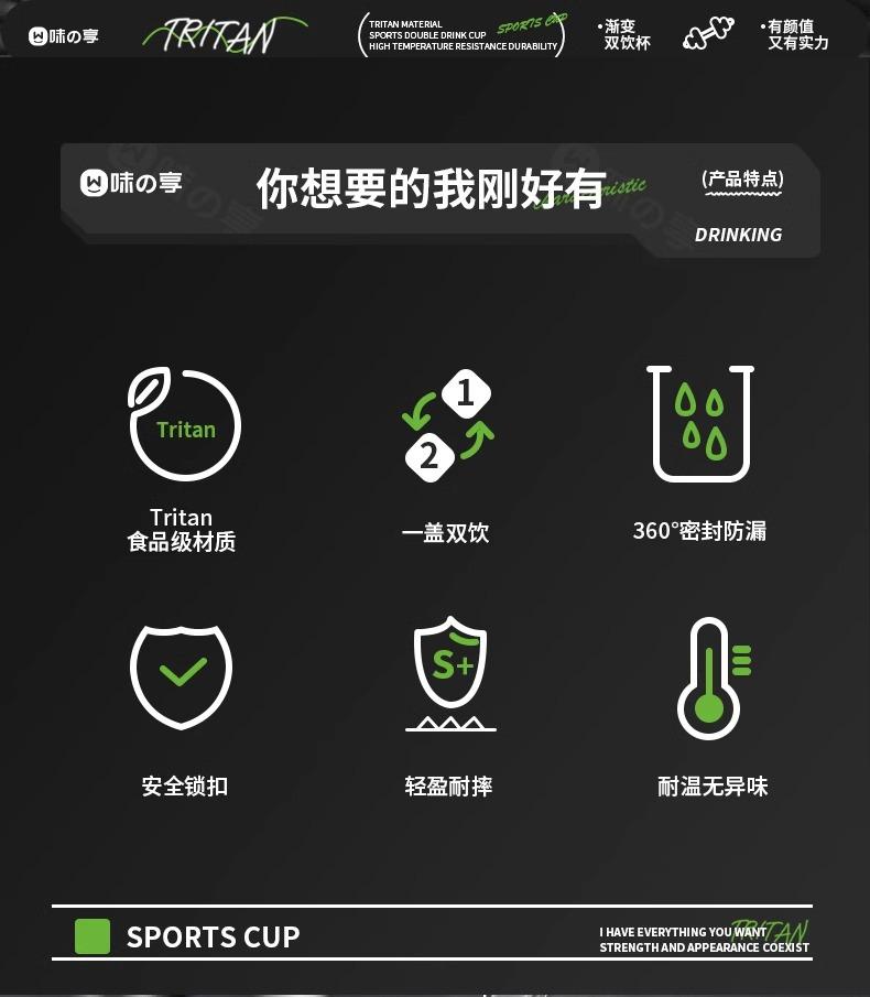 Vaso de agua deportivo verano degradado alto valor de color fitness exterior resistente a altas temperaturas estudiantes hombres y mujeres vaso de agua de plástico portátil