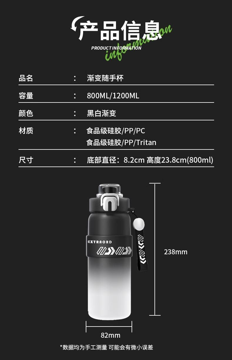 Anti-wear and drop-resistant pc sports water bottle gradient 800ml, Anti-wear and drop-resistant pc sports wat...