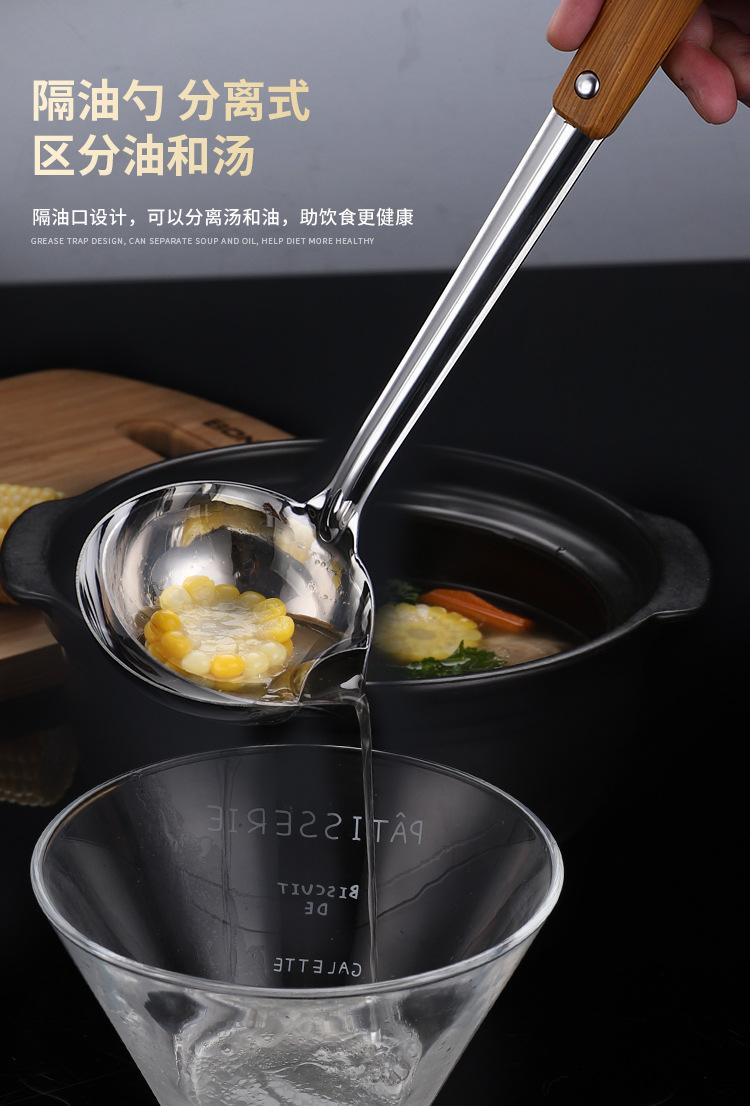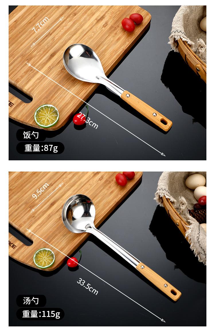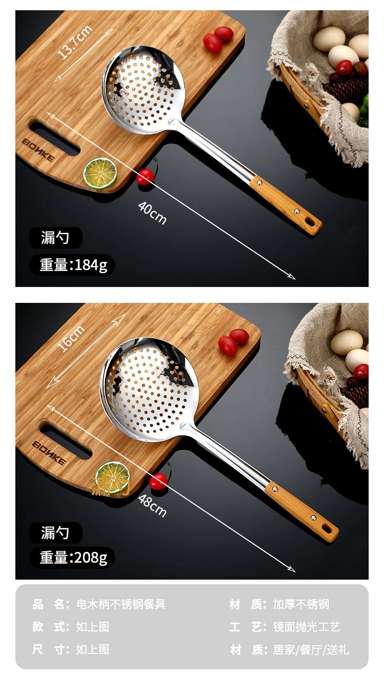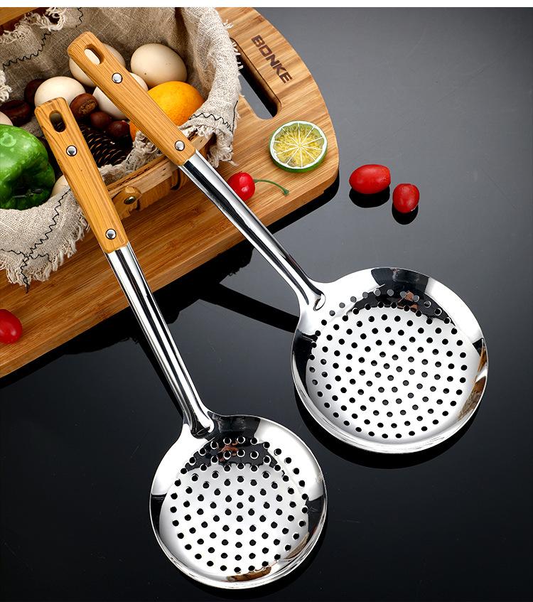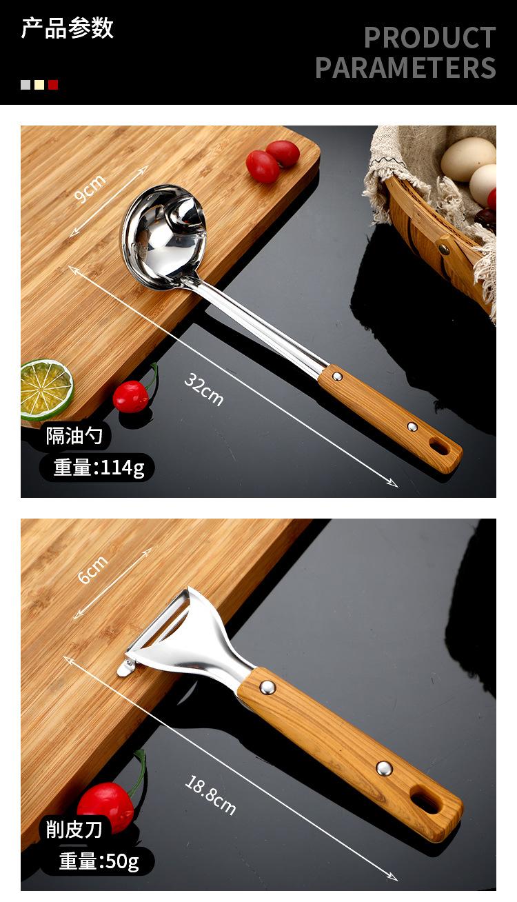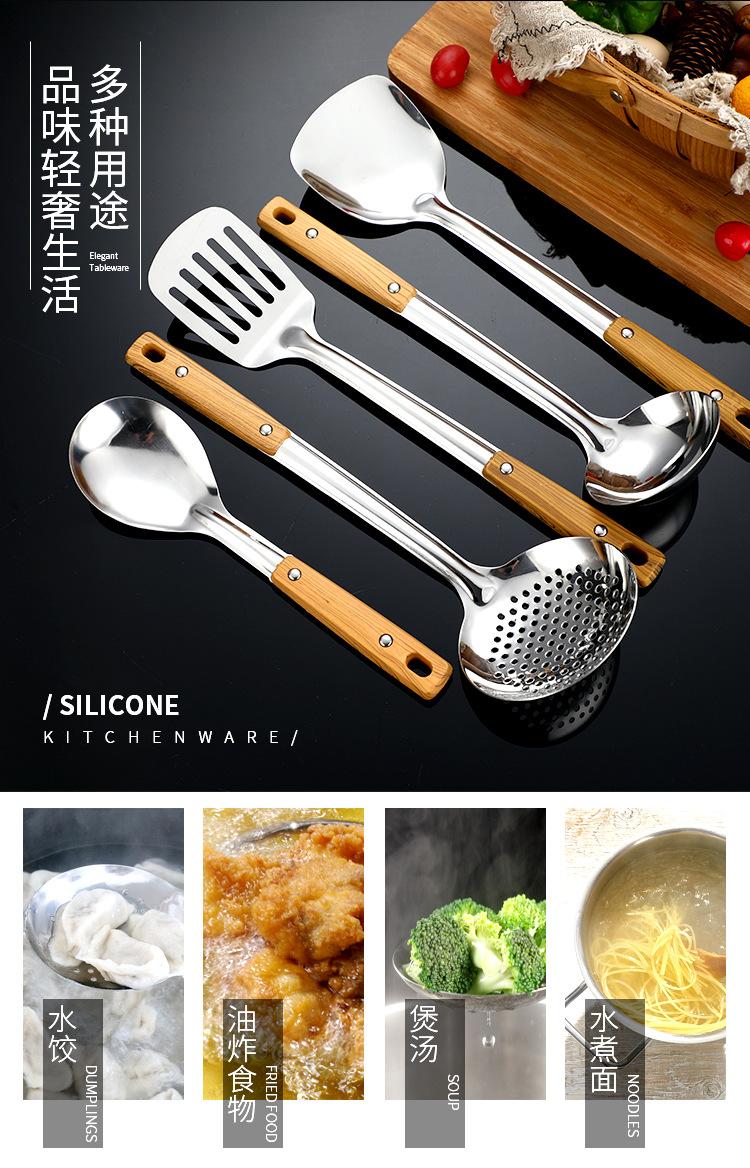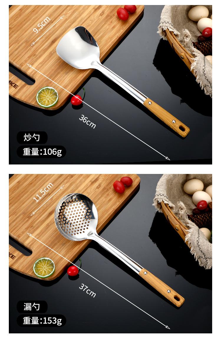 Utensilios de cocina de acero inoxidable espátula colador cuchara para sopa pala para freír cuchara para cocinar doméstica pala mango de madera de imitación juego de utensilios de cocina al por mayor