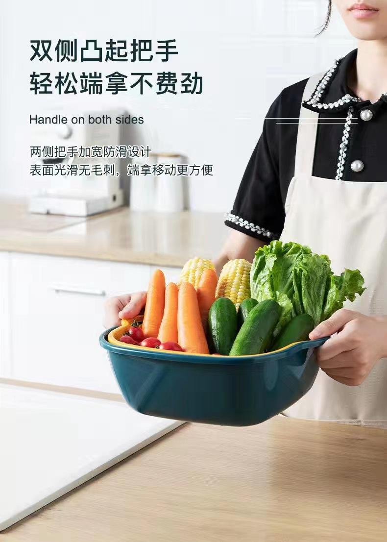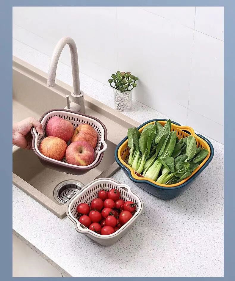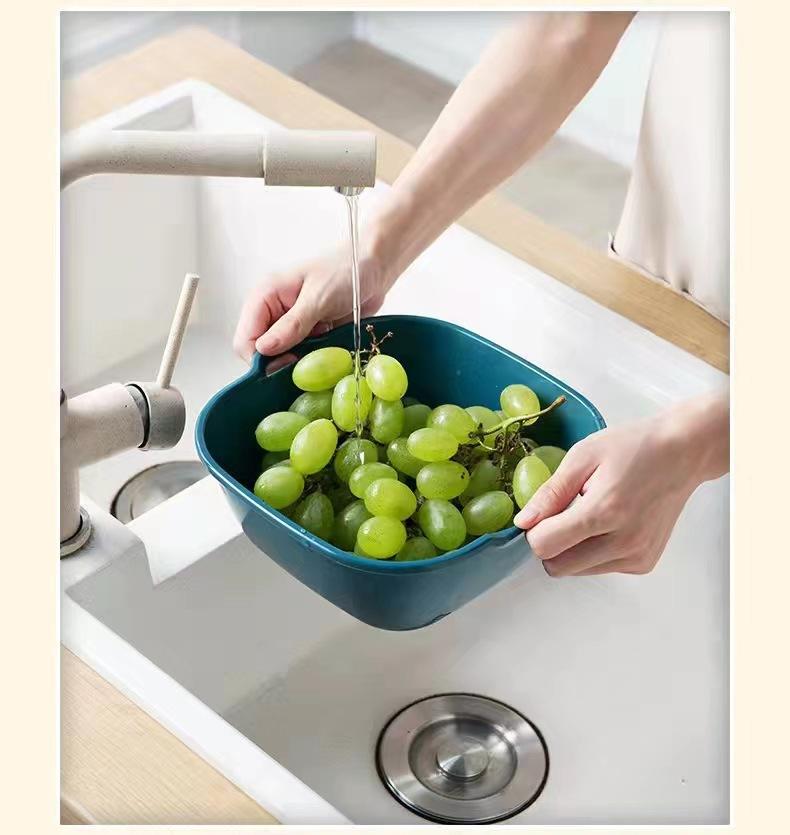 Cesta Escurridora de Fregadero de Plástico de Doble Capa Cocina Multifuncional Sala de Estar Hogar Plato de Frutas Cesta para Lavar Frutas y Verduras