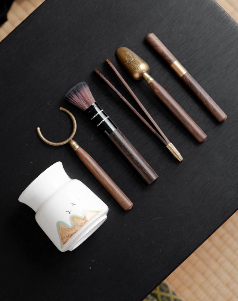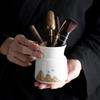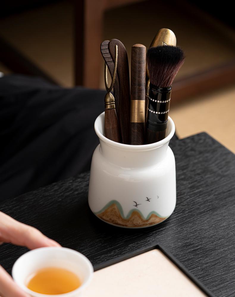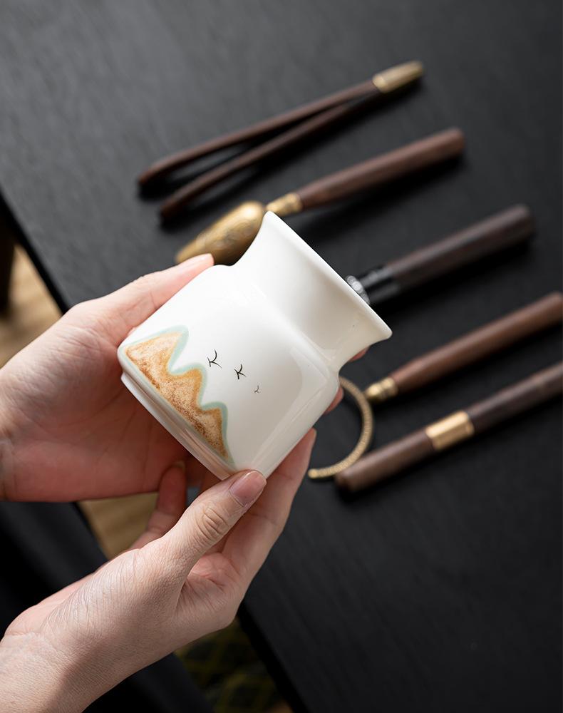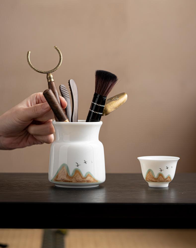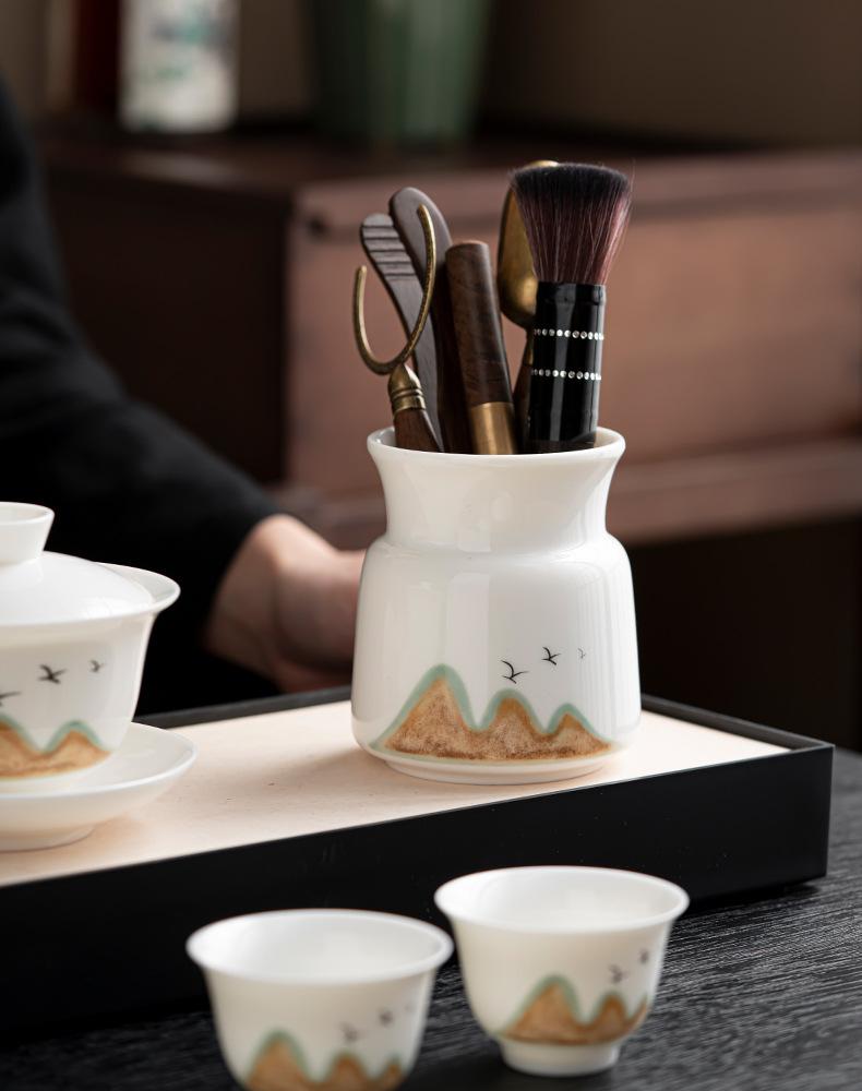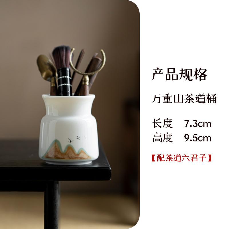 Porcelana de jade graso de oveja seis caballeros Qianli Jiangshan herramienta de almacenamiento cubo para ceremonia del té juego de té kung fu de cerámica para el hogar accesorios para ceremonia del té