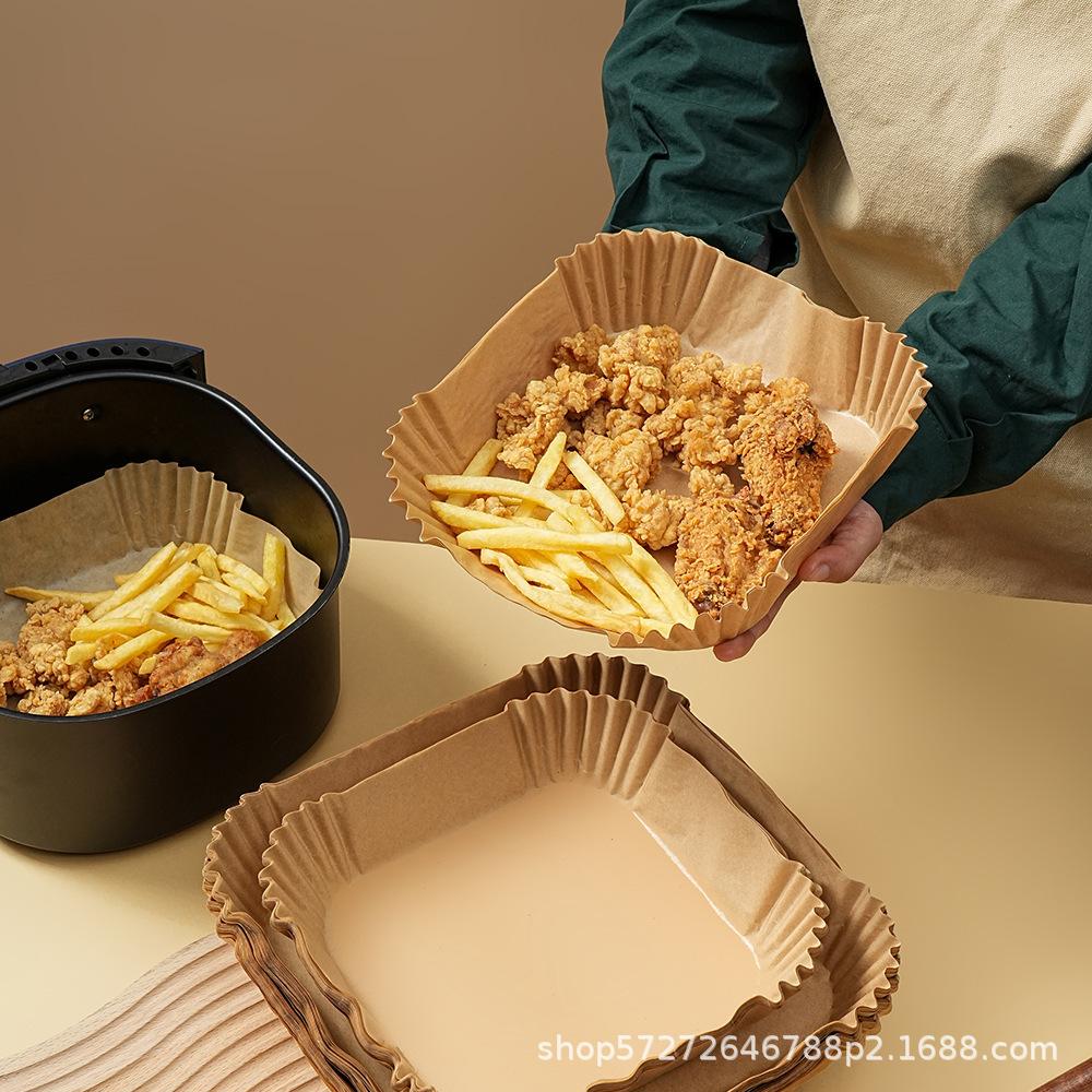 Plato de Papel Especial para Freidora de Aire Doméstico Resistente a Altas Temperaturas Almohadilla de Papel Absorbente de Aceite Papel de Grado Alimenticio Cuadrado Redondo Papel para Hornear Aceite de Silicona