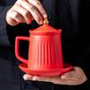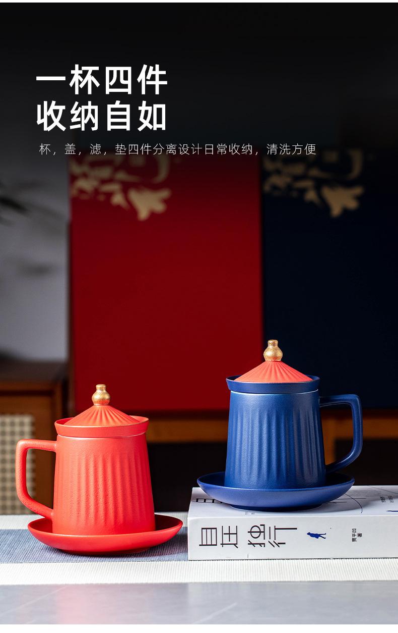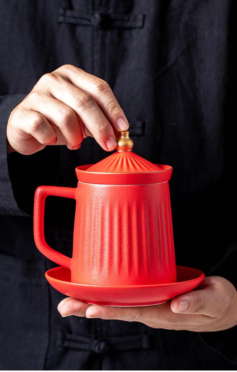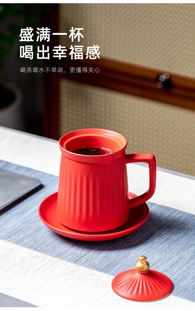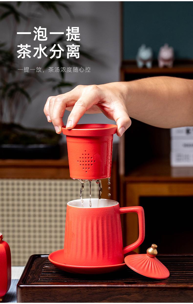 Taza de té de cerámica taza de agua juego de té Taza con tapa hogar simple separación de té oficina Taza regalo de mano