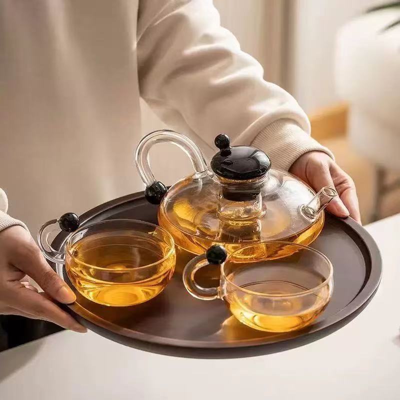 Hervidor de té con diseño de cola de rata, nuevo juego de té elegante con filtro, adecuado para uso doméstico, compatible con estufa vitrocerámica eléctrica, tetera de vidrio