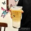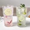 Transparent high bamboo cup + double drinking lid + glass straw, Pink tall bamboo cup + double drinking lid + ...